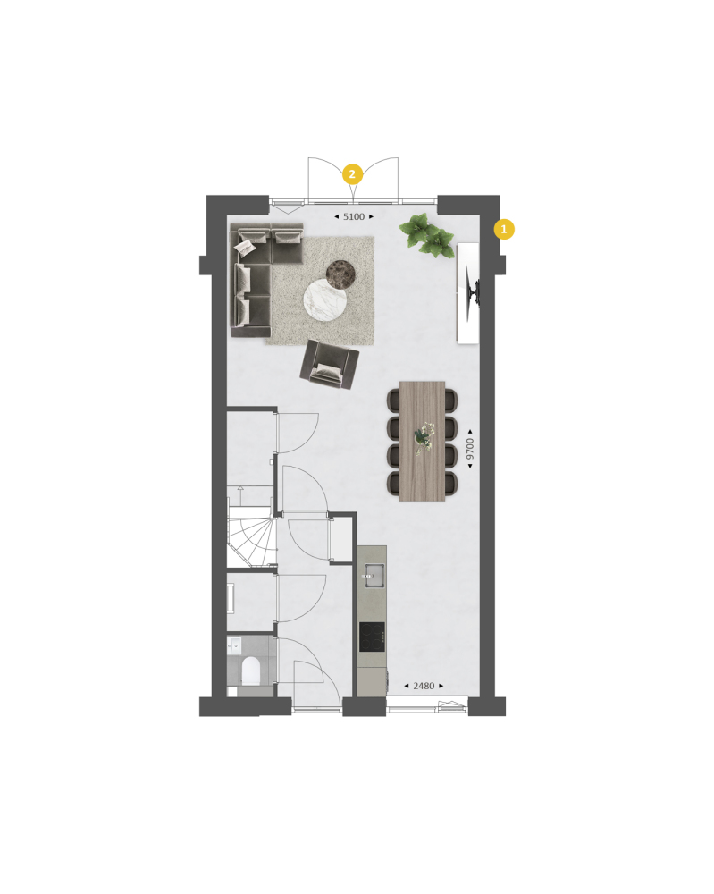 Welke indelings- en uitbreidingsmogelijkheden er voor deze woning mogelijk zijn, is afhankelijk van de fase waarin de bouw van deze woning zich bevindt. Informeer naar de actuele mogelijkheden voor deze woning.
