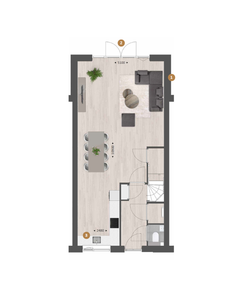 Welke indelings- en uitbreidingsmogelijkheden er voor deze woning mogelijk zijn, is afhankelijk van de fase waarin de bouw van deze woning zich bevindt. Informeer naar de actuele mogelijkheden voor deze woning.