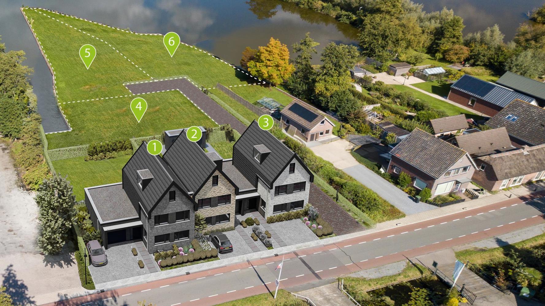 De drie royale herenhuizen zijn gelegen aan de Voorweg en vormen een prachtig geheel dankzij de samenhang in stijl, vorm en materiaalgebruik. De woningen zijn vlakbij het water gelegen en kijken uit op de natuurrijke omgeving. De riante afmeting van zowel de woning (ca. 165 tot 196 m2 gbo) als het perceel zorgen voor veel wooncomfort en bieden ruimte voor al uw woonwensen. Iedere woning is volledig aanpasbaar, zodat het nieuwe huis straks in alle opzichten uw droomhuis is!
