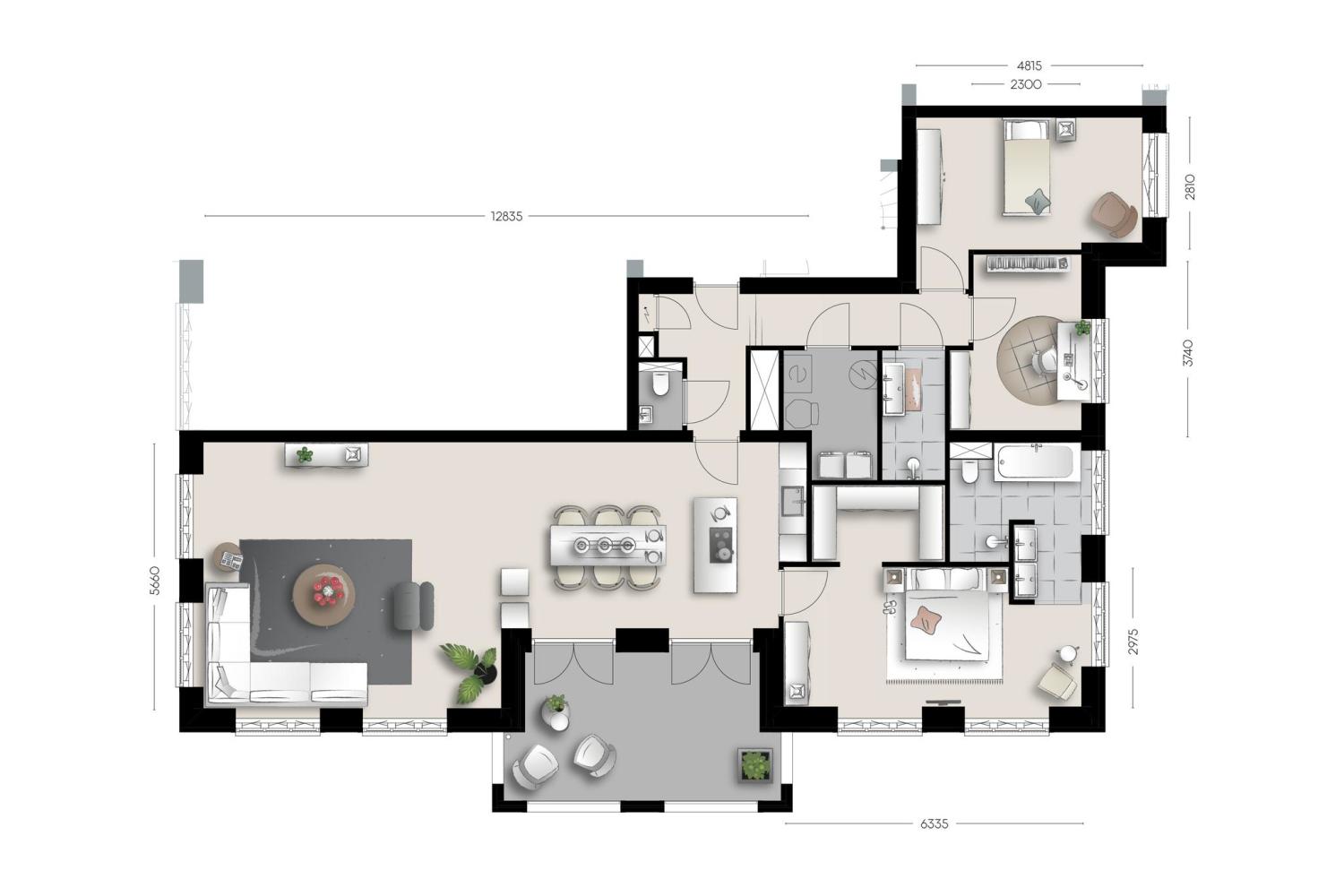 Dit 4-kamer appartement is te vinden op de 2e tot en met de 4e etage. De riante woonkamer en keuken hebben een oppervlak van ruim 60 m² en twee dubbele openslaande deuren naar het terras van 17 m².