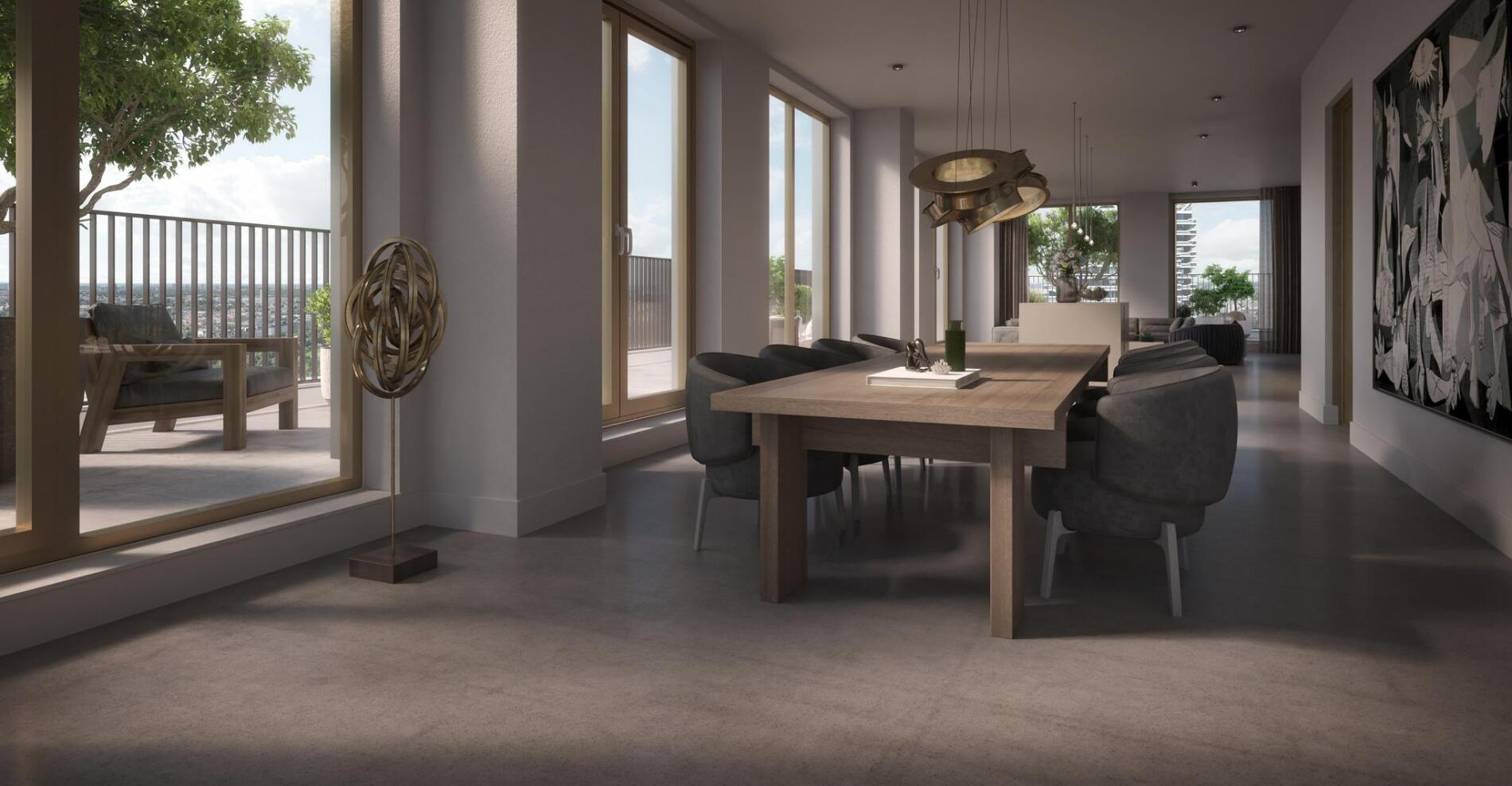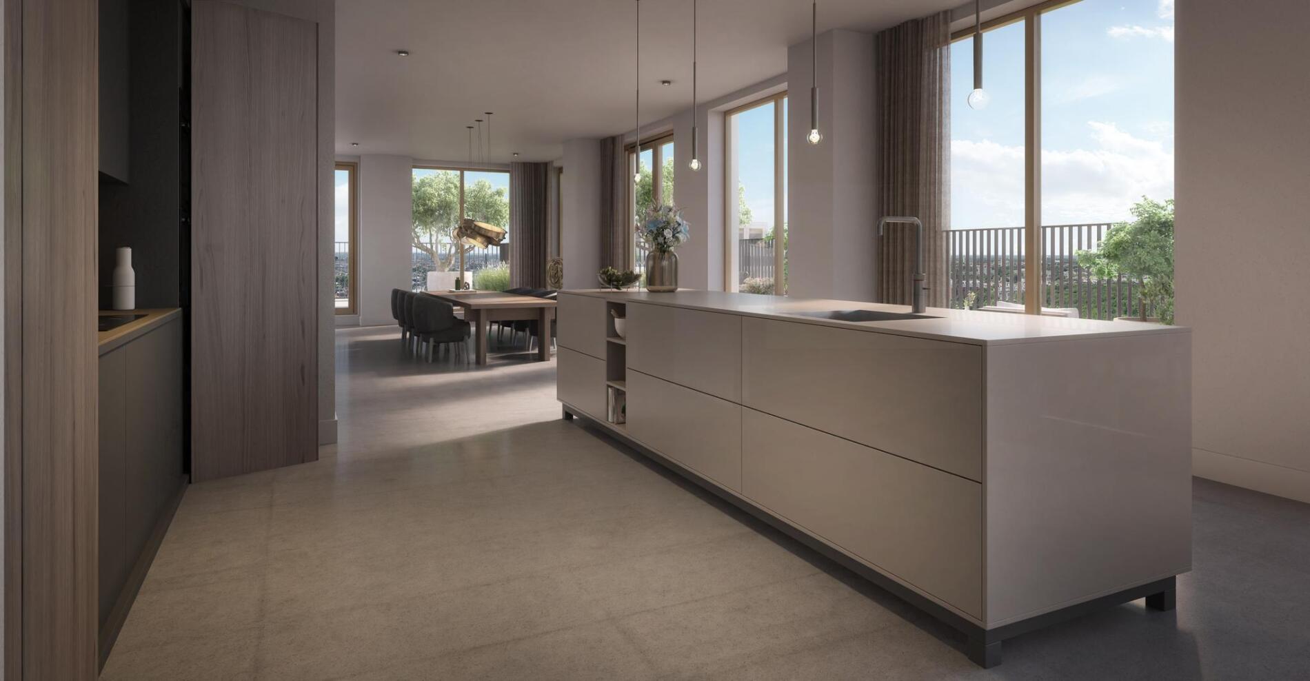 De zon schijnt over Den Haag. Vanuit uw appartement hoog in KJ geniet u van een fenomenaal uitzicht. ’s Avonds heeft u er een modern panorama Mesdag met Scheveningen en een zonsondergang als middelpunt. In deze appartementen voelt u zich al snel on top of the world. Groots wonen in het hart van de residentie. De wereld begint hier letterlijk aan uw voeten. Den Haag, Scheveningen en via het Centraal Station: de snelste opstap naar Brussel, Parijs en Londen. Going places. Alles staat hier in verbinding met elkaar.