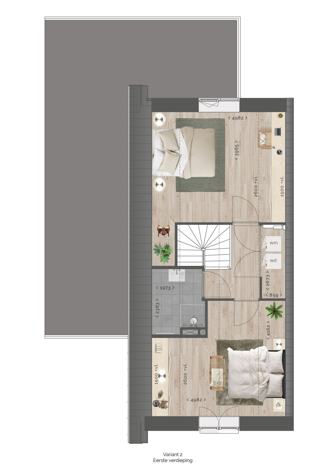- Verandawoning variant 2: Hiermee kiest u voor een levensloopbestendige woning met een slaapkamer en badkamer op de begane grond. Perfect als u nu al gelijkvloers wilt wonen, of voorbereid wilt zijn op de toekomst.