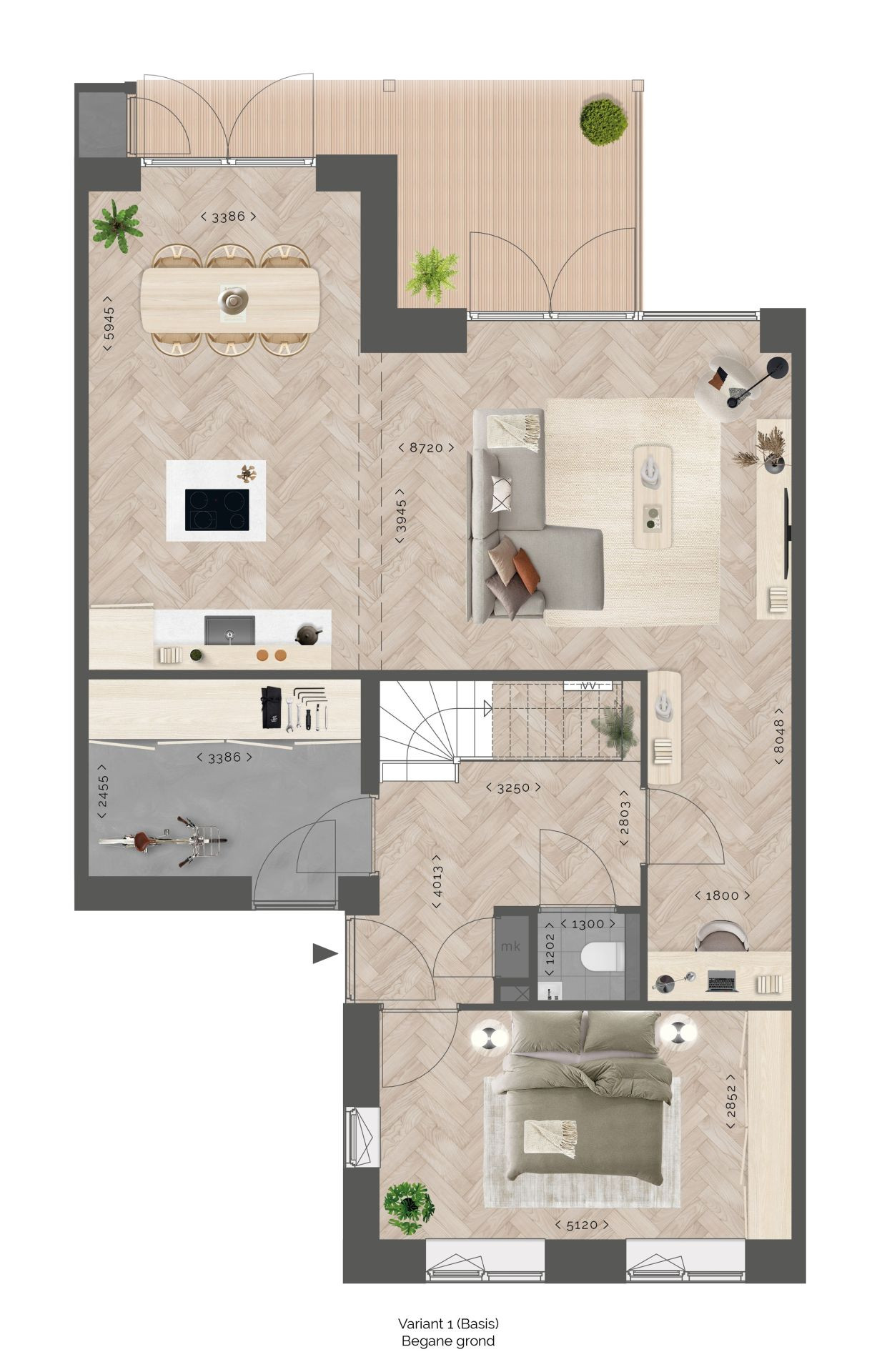 - Verandawoning variant 1: Met deze indeling geniet u van een ruime gezinswoning, dankzij de extra kamer op de begane grond. U kunt deze kamer gebruiken als slaapkamer, werkruimte, tv- of speelkamer. Ideaal voor singles, koppels of jonge gezinnen.