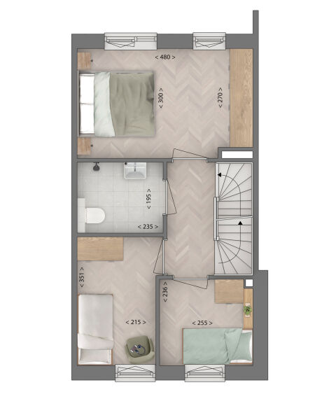 Open de voordeur en kom binnen! Via de hal met toilet en trap naar boven loop je door naar het woongedeelte. Deze lichte, open ruimte met hoge ramen heeft de keuken aan de voorzijde en achterin de tuingerichte zithoek. Als het zonnetje schijnt, gooi je hier de tuindeuren lekker open. Zo proef je hier maximaal van het buitenleven. Praktisch is deze woning ook, want de trapkast biedt ruimte voor keukenvoorraad en bijvoorbeeld de stofzuiger. Op de 1e verdieping zijn 3 slaapkamers, waarvan één woningbreed, en de badkamer met wastafel, douche en toilet. Op zolder vind je de technische ruimte inclusief aansluitingen voor de wasmachine en droger. De rest van de verdieping is helemaal naar eigen wens in te delen. Wat je ook kiest, het dakraam zorgt in ieder geval voor fijne lichtinval.