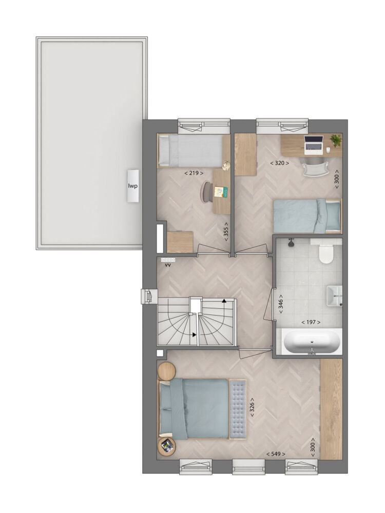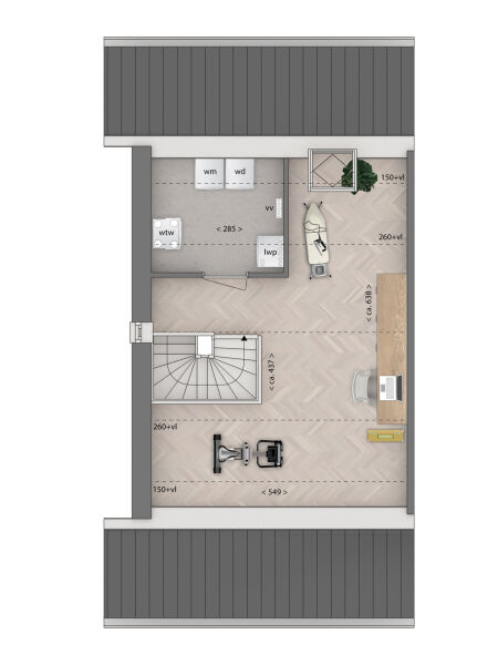 Via de zijentree kom je binnen in de hal met toilet en trapopgang. Door naar de royale, U-vormige woonkamer. Deze leefruimte is open en verbonden, maar heeft duidelijke zones. Aan de voorzijde richt je een gezellige zithoek in, achterin bevindt zich de compleet uitgevoerde keuken met openslaande deuren naar de tuin. Op de eerste verdieping zijn 3 slaapkamers, waaronder één over de volle breedte van de woning. De badkamer ligt centraal en is uitgerust met een ligbad, douche, wastafel en toilet. En de zolder biedt meer dan je verwacht. Naast de afgesloten technische ruimte met aansluitingen voor wasmachine en droger richt je deze verdieping helemaal naar wens in!