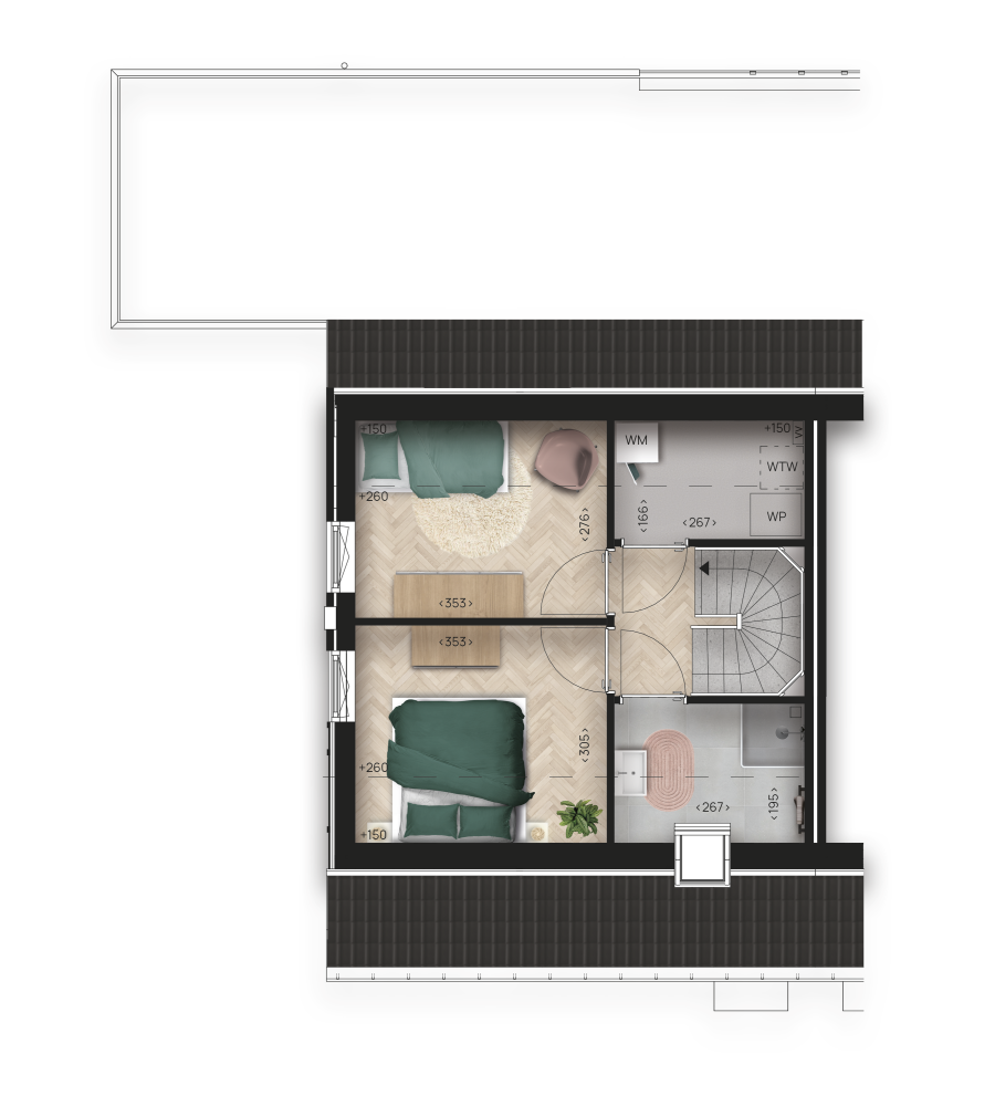 - Extra verdieping met twee slaapkamers en een tweede badkamer, perfect voor logees.