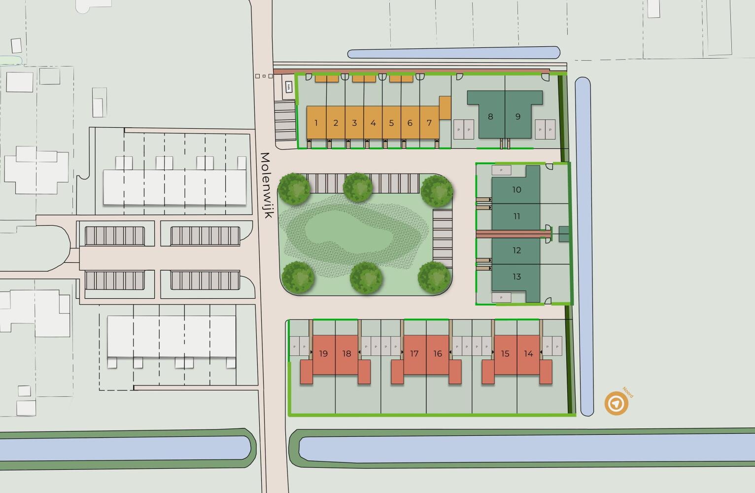 Van vlotte rijwoningen voor starters tot twee-onder-een-kapwoningen met uitzicht op het water en levensloopbestendige woningen met een eigen oprit – alle 19 woningen zijn slim ingedeeld, energiezuinig en hebben veel lichtinval.