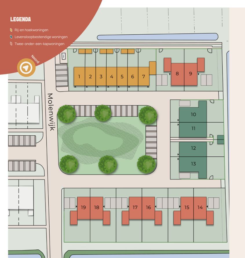 Van vlotte rijwoningen voor starters tot twee-onder-een-kapwoningen met uitzicht op het water en levensloopbestendige woningen met een eigen oprit – alle 19 woningen zijn slim ingedeeld, energiezuinig en hebben veel lichtinval.