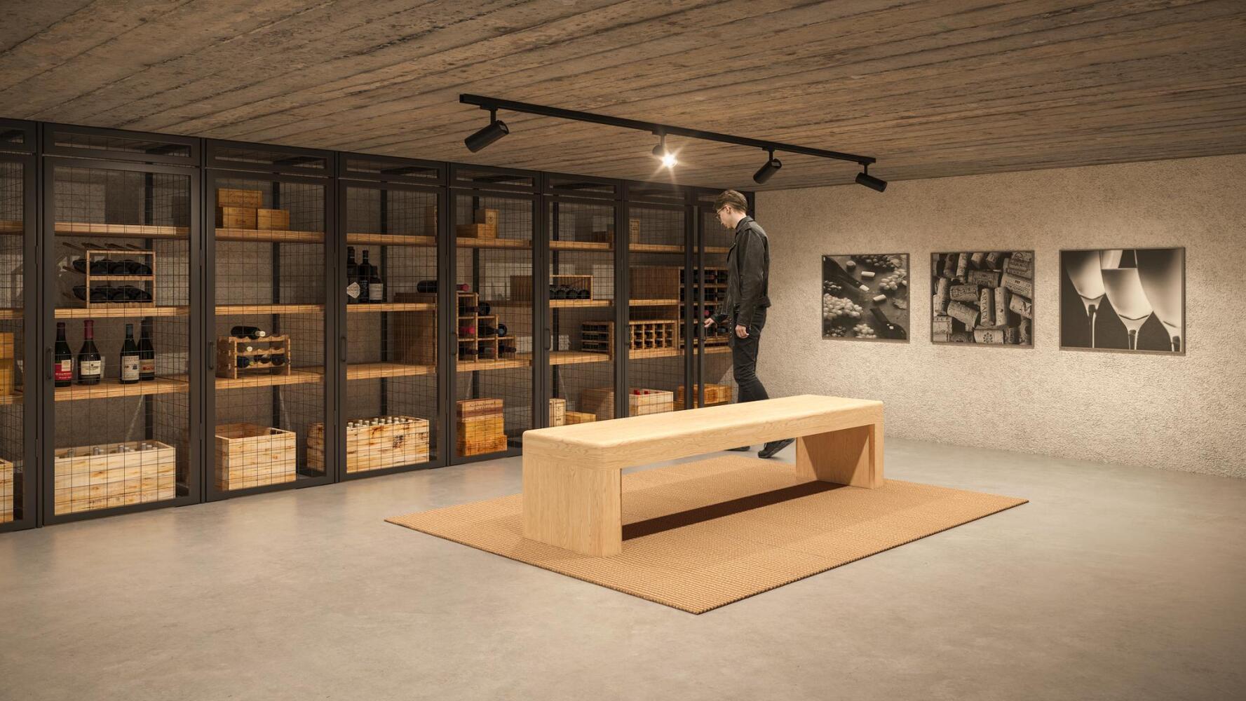 Zeer bijzonder: in het souterrain is een wijnkelder gerealiseerd! Iedere woning heeft een eigen afsluitbare kast om de mooiste flesje(s) in te bewaren.
