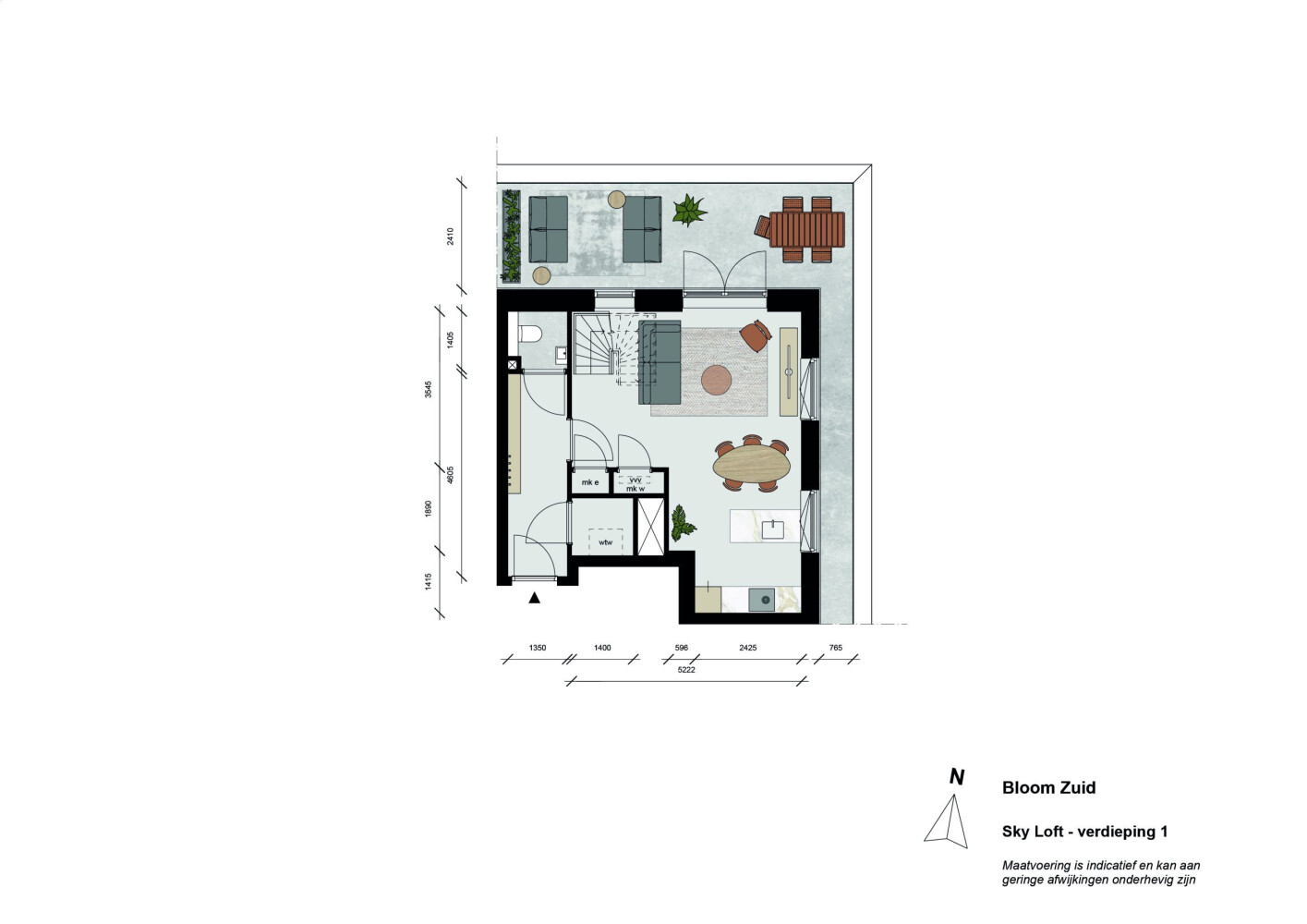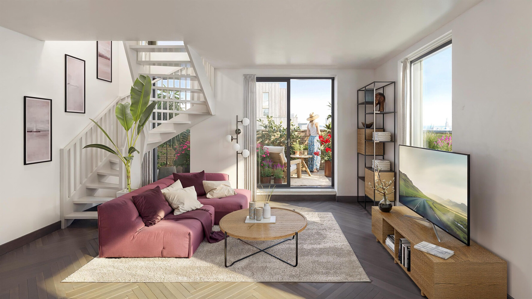 Deze tweelaagse maisonnette, verdeeld over de vijfde en zesde verdieping, heeft een echte loft-uitstraling en verrassend veel buitenruimte. Met 84,5 m² woon je hier licht en comfortabel. Beneden speelt het dagelijks leven zich af: borrelen, lang tafelen en relaxed op de bank ploffen. De leefkeuken maakt van koken vanzelf een sociaal moment, terwijl de grote ramen en het groen buiten zorgen voor een fijne, open sfeer. En praktisch is de Sky Loft ook: er is een inpandige berging met plek voor extra opslag én aansluitingen voor wasmachine en droger.