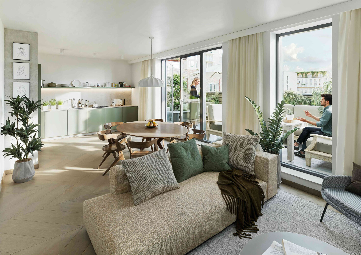 Deze tweelaagse maisonnette, verdeeld over de vijfde en zesde verdieping, heeft een echte loft-uitstraling en verrassend veel buitenruimte. Met 100,6 m² woon je hier licht en comfortabel. Beneden speelt het dagelijks leven zich af: borrelen, lang tafelen en relaxed op de bank ploffen. De leefkeuken maakt van koken vanzelf een sociaal moment, terwijl de grote ramen en het groen buiten zorgen voor een fijne, open sfeer. En praktisch is de Sky Loft ook: er is een inpandige berging met plek voor extra opslag én aansluitingen voor wasmachine en droger.