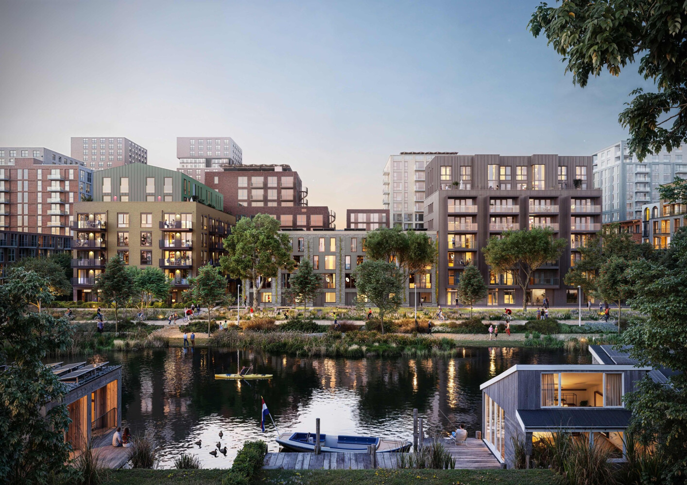 De afwisseling van robuuste woongebouwen, chique stadspanden, townhouses aan het water en houten details geeft Bloom Zuid een karaktervolle en eigentijdse uitstraling. De straten en pleinen voelen levendig en uitnodigend, terwijl het groen zorgt voor rust en ruimte om te ontspannen, te spelen en elkaar te ontmoeten.