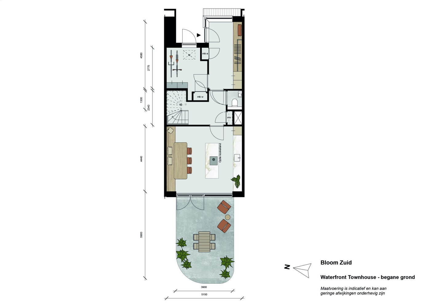 De binnentuin van Bloom Zuid vormt een groen rustpunt in het hart van de stedelijke dynamiek. Zodra je de binnentuin binnenstapt, laat je de energie van de straat achter je en word je omringd door weelderig groen, fleurige beplanting en natuurlijke wadi’s die regenwater op een slimme manier opvangen. Hier is ruimte om even te vertragen: een boek in de zon, spelende kinderen op de stapstenen of een spontaan gesprek met je buren.