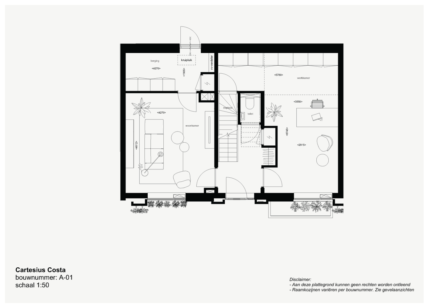 De vier duurzame stadswoningen van Costa I hebben alles wat zo fijn is aan een onbezorgd stadsleven midden in Utrecht. Deze stadswoningen zijn perfect voor die drukke weekenden zijn waarin alle kinderen thuis zijn met aanhang of juist die rustige momenten waarin je thuis kantoor houdt. Costa I biedt misschien wel de grootste woonoppervlaktes van Cartesius, met heerlijk veel licht door de grote raampartijen. De (hoek)stadswoning A-03 heeft door de extra raampartijen nóg meer lichtinval en een geweldig levendig uitzicht.