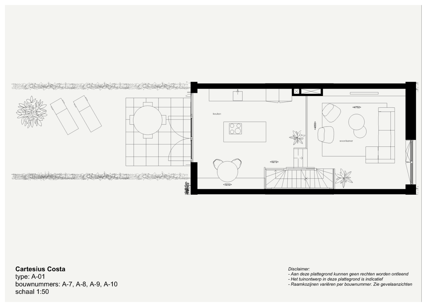 De stadswoningen A-07 t/m A-21 hebben een begane grond en eerste verdieping die voorbereid zijn op het plaatsen een keuken, pantry of mooie bar als onderdeel van het interieur. Standaard is er voorzien in een stelpost voor de circulaire Cartesius Circo keuken; een primeur in samenwerking met Bruynzeel Keukens. Vanaf de split level verdieping stap je zo je privétuin in. Tot 25 juni 2025 a.s. bieden we je de unieke mogelijkheid te kiezen uit drie speciaal ontworpen tuinindelingen! Deze groene oase is groter dan je eigen privétuin, het loopt naadloos over in de grote binnentuin van Nicoya; een rustig, bloemenrijk groen paradijs om het hele jaar van te genieten.
