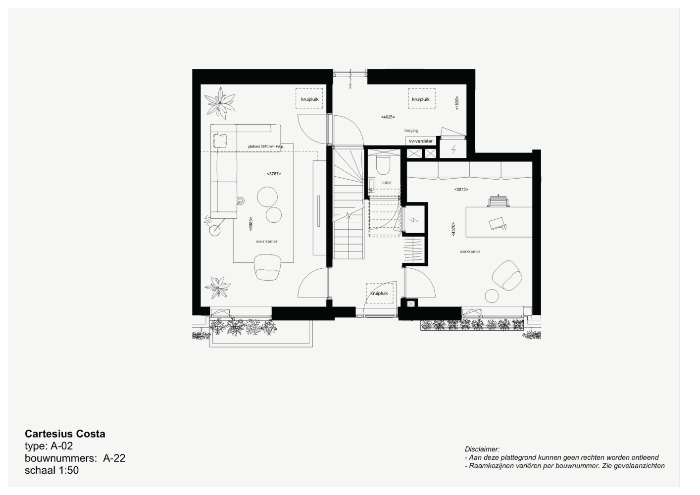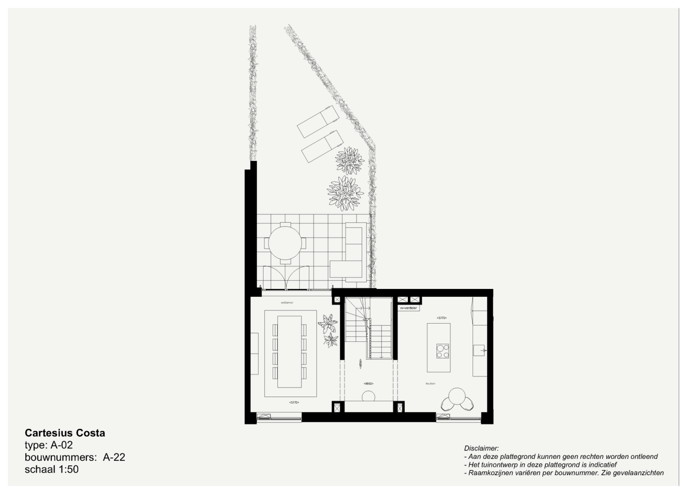 De stadswoningen A-07 t/m A-21 hebben een begane grond en eerste verdieping die voorbereid zijn op het plaatsen een keuken, pantry of mooie bar als onderdeel van het interieur. Standaard is er voorzien in een stelpost voor de circulaire Cartesius Circo keuken; een primeur in samenwerking met Bruynzeel Keukens. Vanaf de split level verdieping stap je zo je privétuin in. Tot 25 juni 2025 a.s. bieden we je de unieke mogelijkheid te kiezen uit drie speciaal ontworpen tuinindelingen! Deze groene oase is groter dan je eigen privétuin, het loopt naadloos over in de grote binnentuin van Nicoya; een rustig, bloemenrijk groen paradijs om het hele jaar van te genieten.