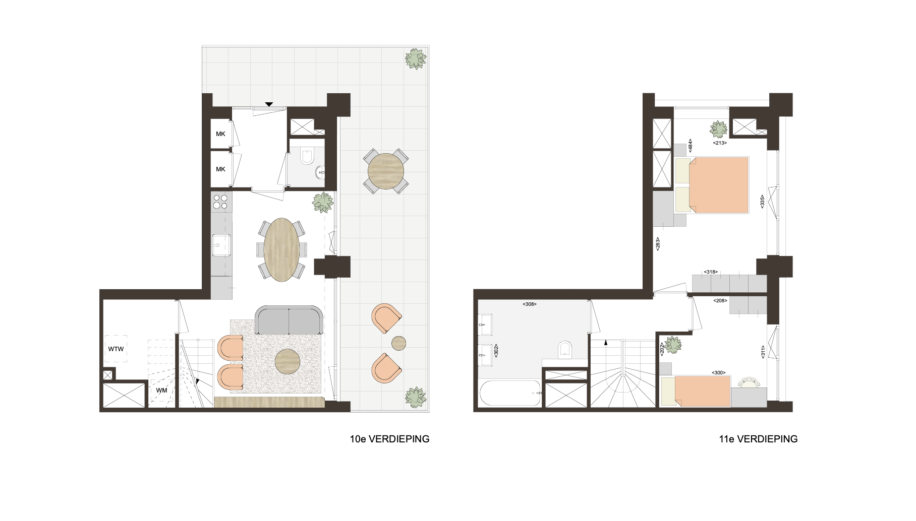 De Cix-terrasappartementen bieden het beste van twee werelden. De sfeer van wonen in een appartement, gecombineerd met de ruimte en het gemak van een compleet woonhuis. Deze woningen zijn verdeeld over twee woonlagen en beschikken over drie of vier kamers. Zo ontstaat extra ruimte en een duidelijke scheiding tussen wonen en slapen. Bovenal voelt het als royaal en overzichtelijk wonen.