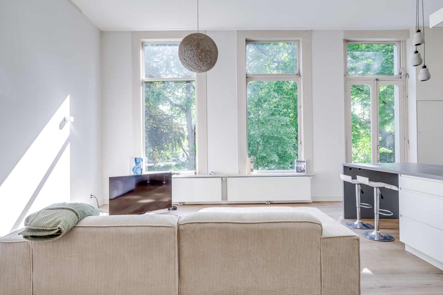 Het appartement combineert de charme van een historisch gebouw met het comfort van modern wonen. Dankzij de zorgvuldig gekozen materialen en zachte kleurstelling ervaar je een serene en luxe sfeer.