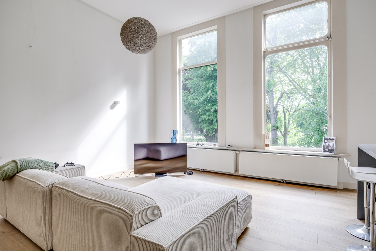 De royale woonkamer wordt gekenmerkt door veel daglicht dankzij grote raampartijen die uitkijken op het groene bolwerk. Ook geeft het hoge plafond veel ruimte. De open leefkeuken vormt het hart van het appartement: stijlvol, modern en klaar voor lange avonden koken, borrelen en genieten.