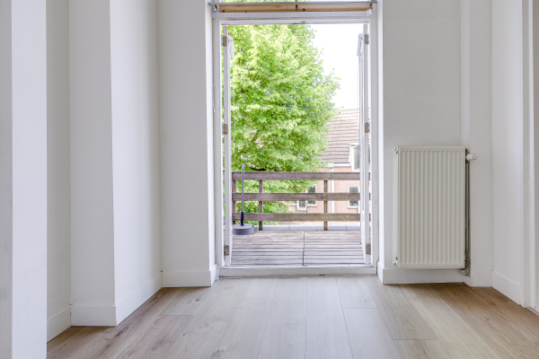 De woonkamer is over de gehele breedte van het pand, waardoor deze veel licht inval heeft. De open leefkeuken vormt het hart van het appartement: stijlvol, modern en klaar voor lange avonden koken, borrelen en genieten.