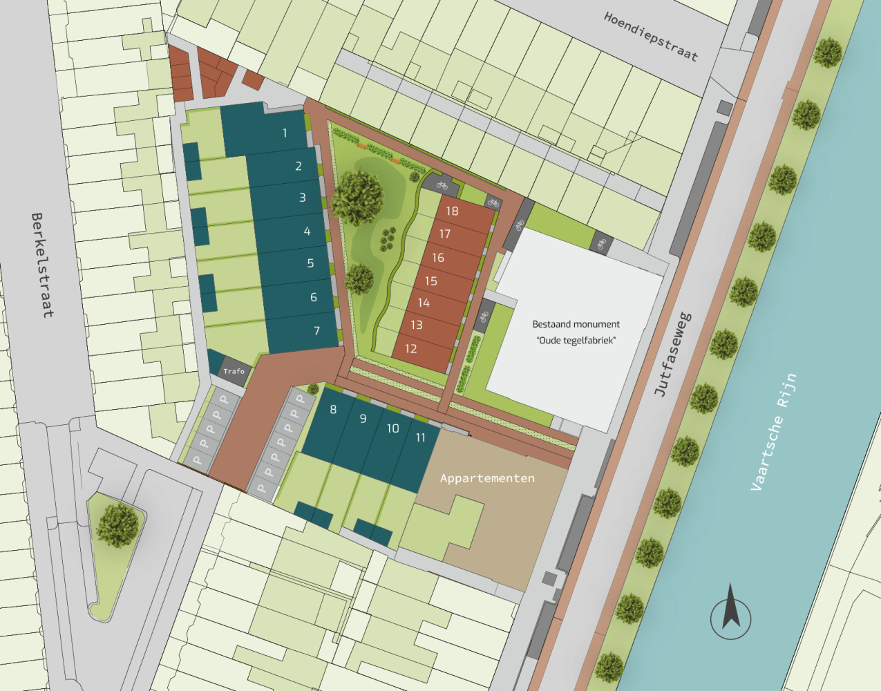 Grenzend aan de Jutfaseweg komen 17 appartementen in een kleinschalig appartementencomplex. De appartementen hebben een oppervlakte variërend van 38 tot 49 m². Ze hebben één of twee slaapkamers en een gemeenschappelijk dakterras op de 1e verdieping. De appartementen hebben een fraai uitzicht over de Vaartsche Rijn. De tweekamerappartementen zijn een heerlijke uitvalsbasis voor singles, starters of studenten. De driekamerappartementen zijn ook erg geschikt voor stellen of vrienden die op zoek zijn naar een betaalbare appartement.