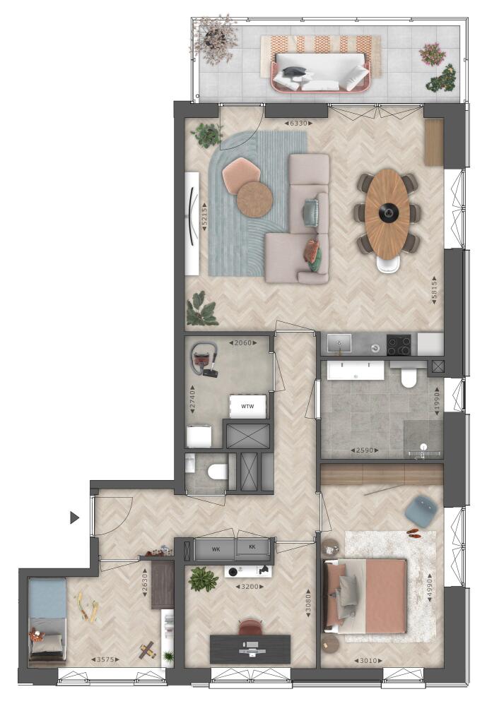 De 67 appartementen bestaan uit diverse 2-,3- en 4-kamerappartementen met een woonoppervlakte van 54 m² tot 105 m², allemaal met een eigen buitenruimte en uitzicht op de groene binnentuin. De koopsommen variëren vanaf € 432.000 v.o.n. tot € 721.000 v.o.n.