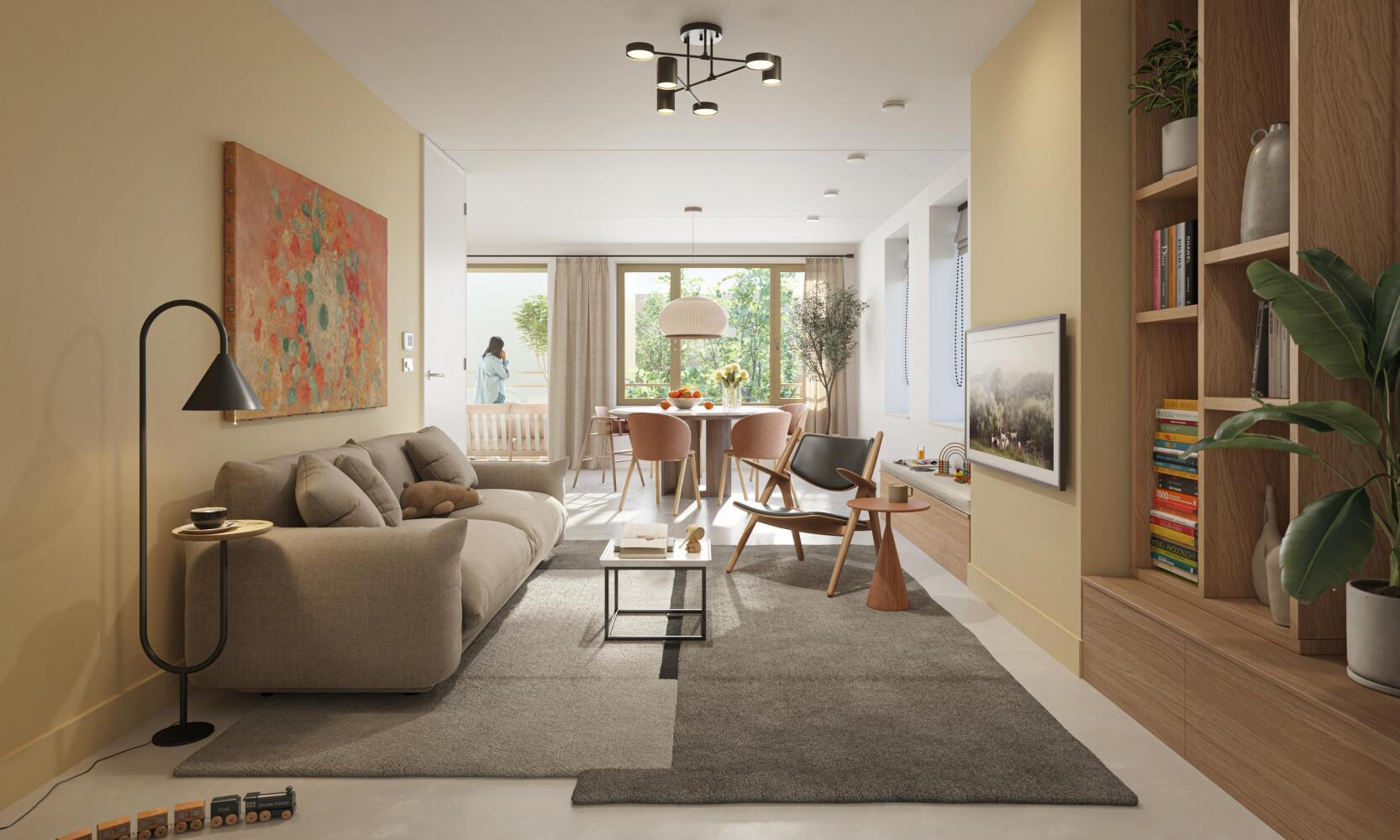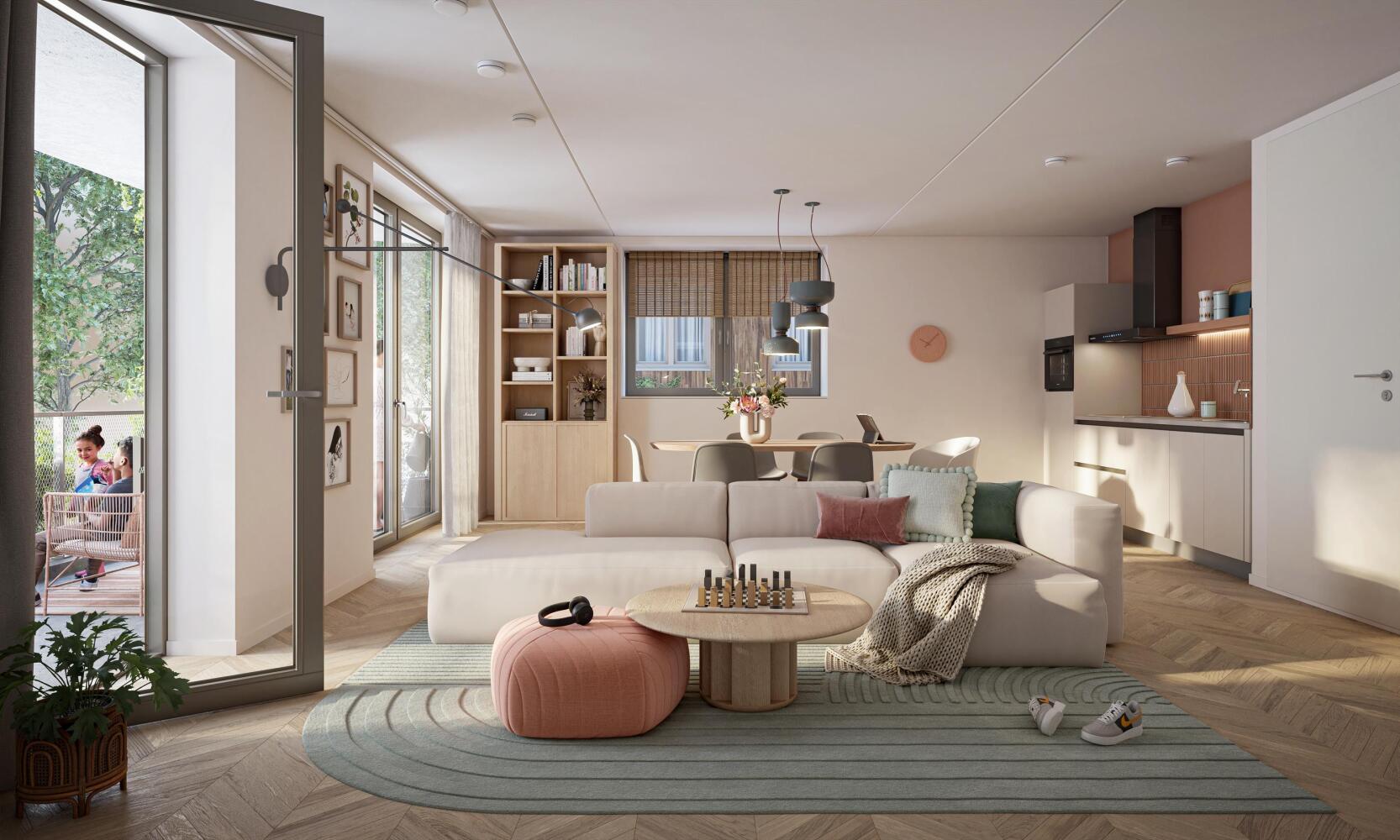 Binnen Ludens Joy is alles ingericht op interactie, op samen leven. Op nieuwe energie. Nieuwe ontmoetingen. Dat zie je terug in de gedeelde entrees, het buurtcentrum, de jongerenhuiskamer. Maar ook in de binnentuin, het gezamenlijke dakterras, de natuur, alles autovrij. De omgeving nodigt uit om naar buiten te gaan. Wonen in Ludens Joy betekent dat je je buren tegenkomt. Dat je ruimtes deelt. Zo maken we energie los. Zo leggen we een warme basis voor spontane ontmoetingen, voor spel en uitwisseling. Voor waar het echt om gaat in dit leven: plezier en samen doen.