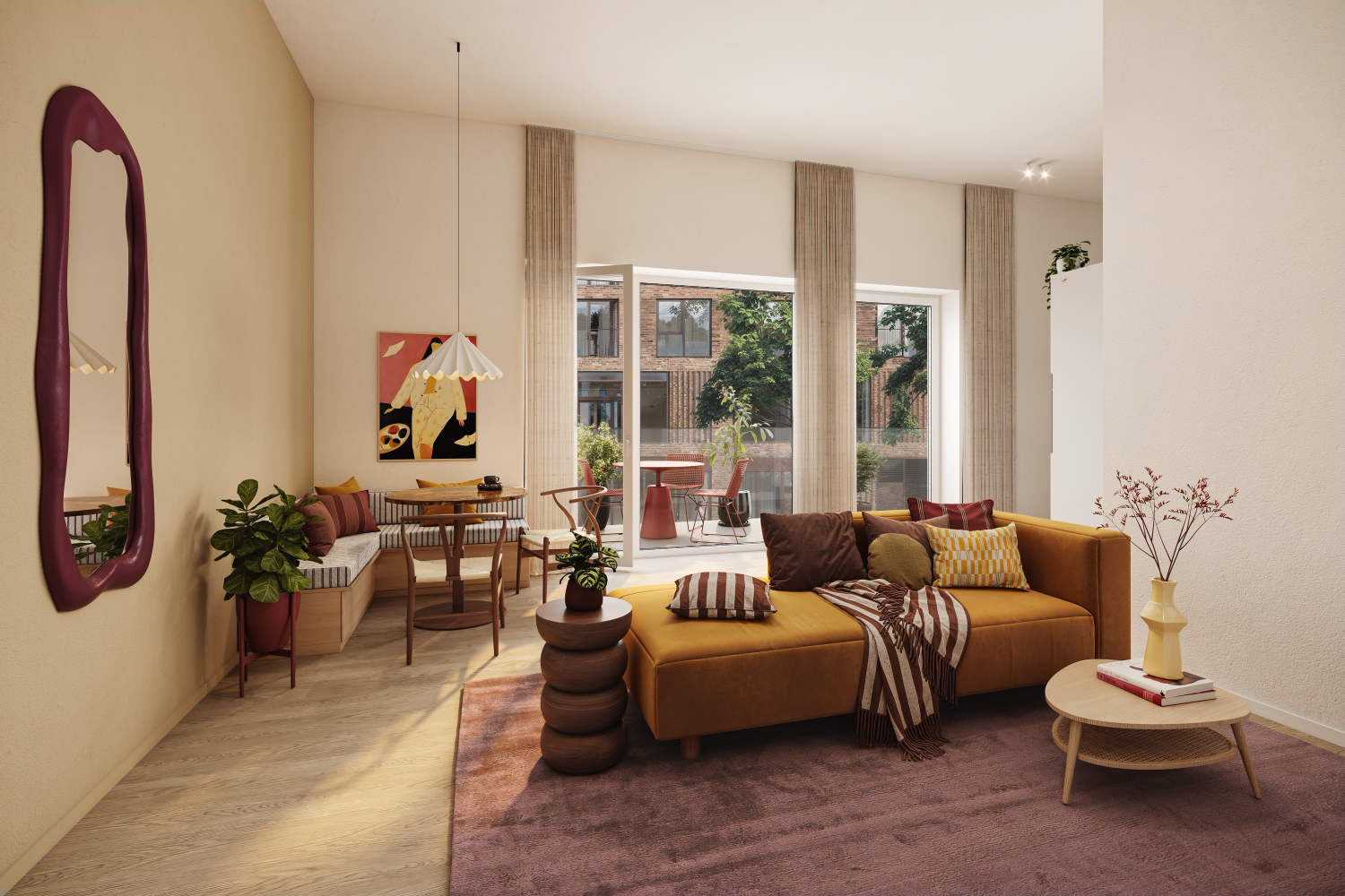 Maar City is meer dan wonen. Het is leven in de volle breedte, zoals je in een stad verwacht. Aan de levendige plint van het blok vind je een supermarkt, een sportschool en een collectieve fietsenstalling, levendige horeca en (creatieve) werkplekken voor startende of groeiende ondernemers. Hier komt alles samen. Vanaf je balkon kijk je uit op het bruisende Bierbrouwersplein van Merwede, waar altijd iets gebeurt. En tegelijkertijd is de natuur nooit ver weg. City grenst namelijk aan het park, met bomen die hoger reiken dan sommige gebouwen.