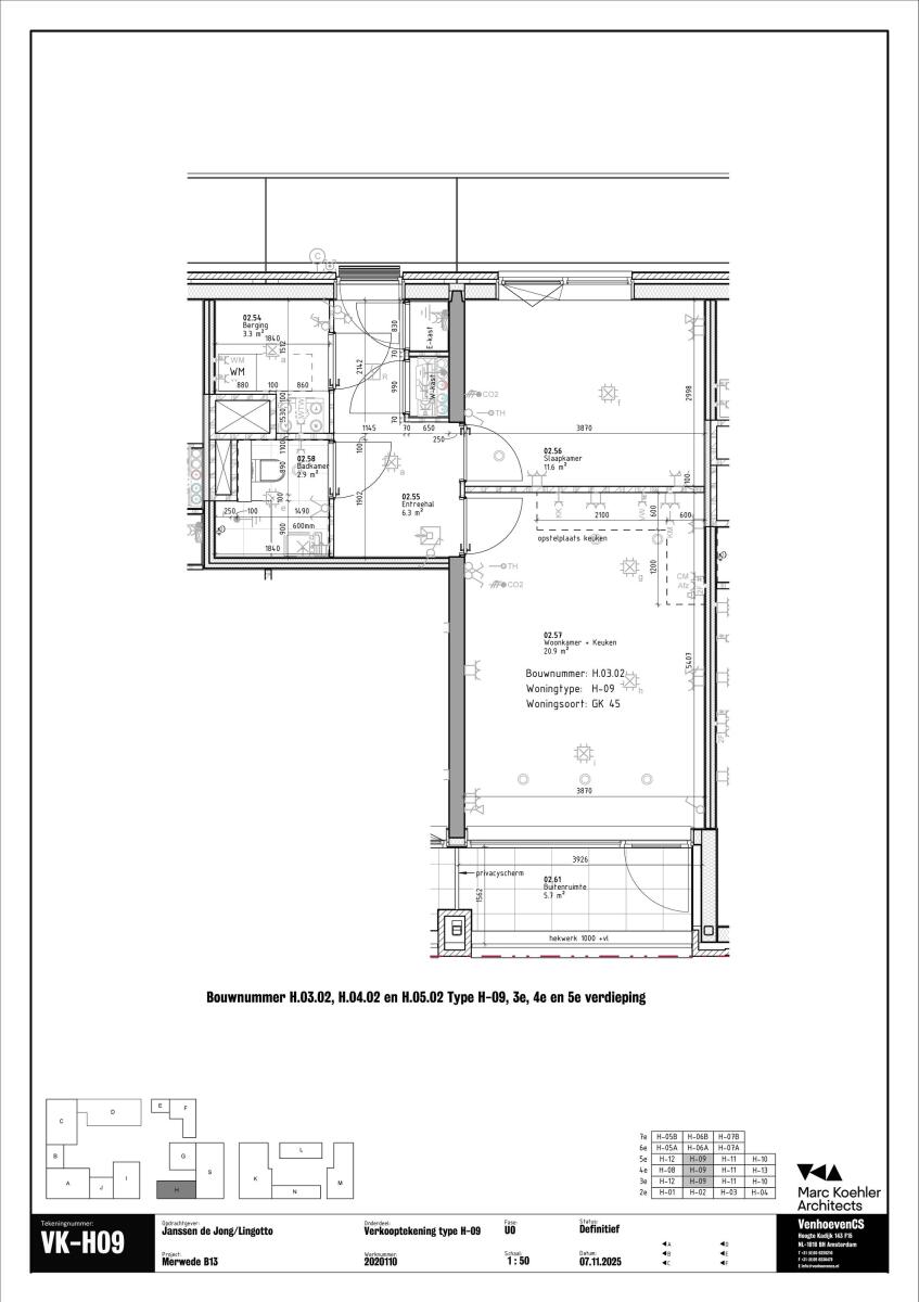 Pand F herken je aan het rode bakstenen gevelbeeld met ritmisch raamspel en zonnige balkons, en daarnaast een hoger bronskleurig volume met royale glaspartijen. Pand H is een rode bakstenen volume met diepe kozijnen en loggia’s vol groen. Beide bieden comfortabele stadswoningen van circa 47 tot 110 m², vrijwel allemaal met een eigen buitenruimte én toegang tot een gezamenlijk dakterras en allemaal met energielabel A++(+).