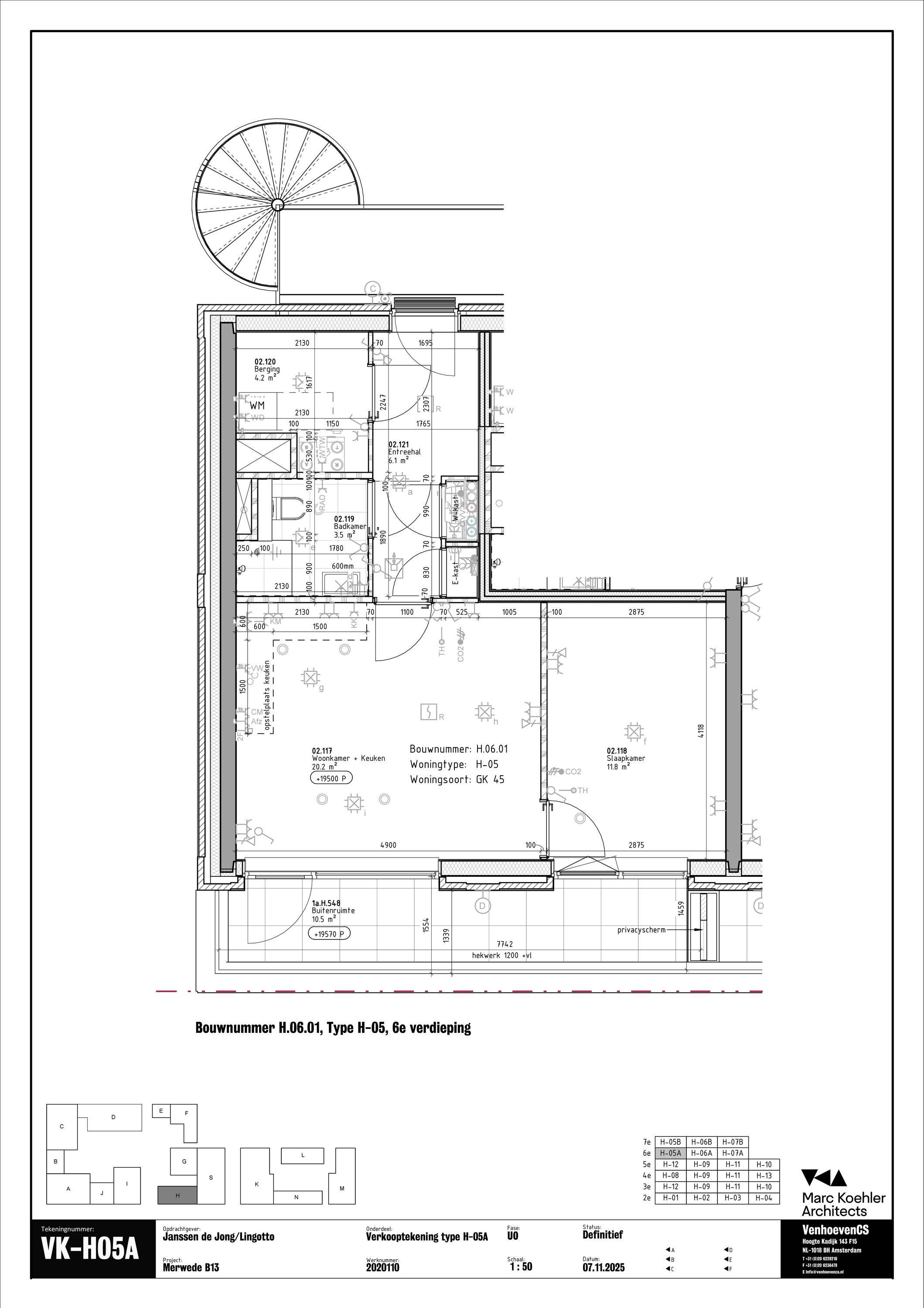 Pand F herken je aan het rode bakstenen gevelbeeld met ritmisch raamspel en zonnige balkons, en daarnaast een hoger bronskleurig volume met royale glaspartijen. Pand H is een rode bakstenen volume met diepe kozijnen en loggia’s vol groen. Beide bieden comfortabele stadswoningen van circa 47 tot 110 m², vrijwel allemaal met een eigen buitenruimte én toegang tot een gezamenlijk dakterras en allemaal met energielabel A++(+).