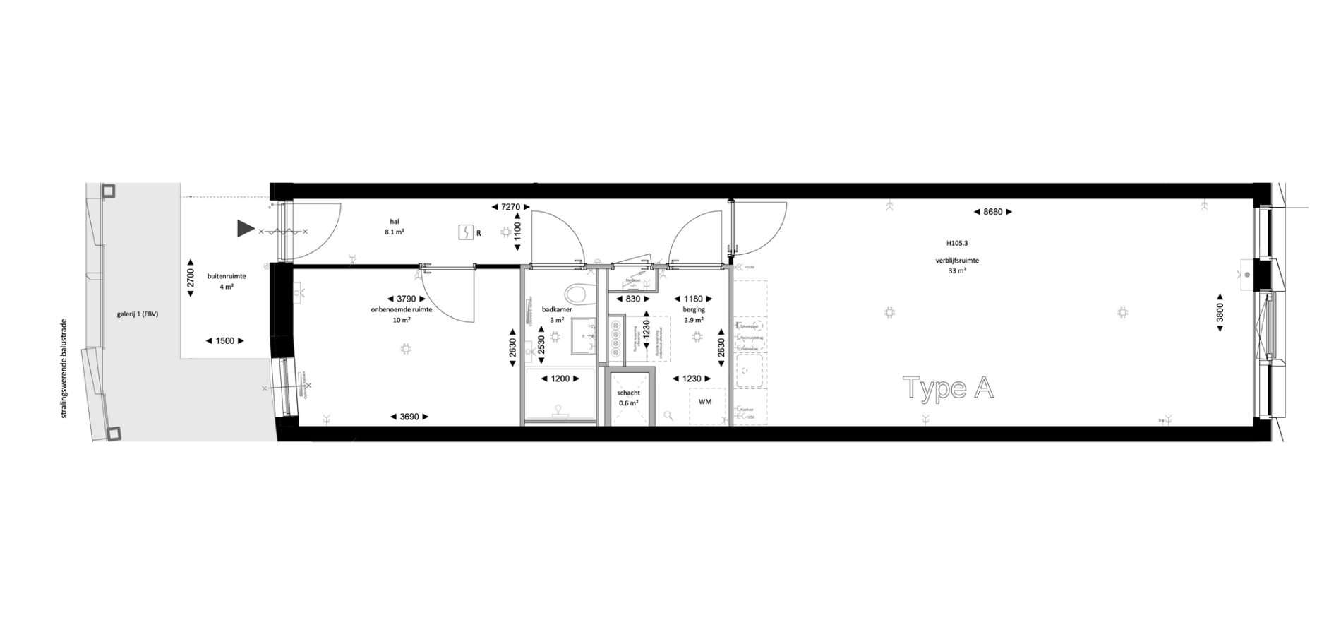 GalerijflatTweekamer appartement | Type A Bouwnummer 70
