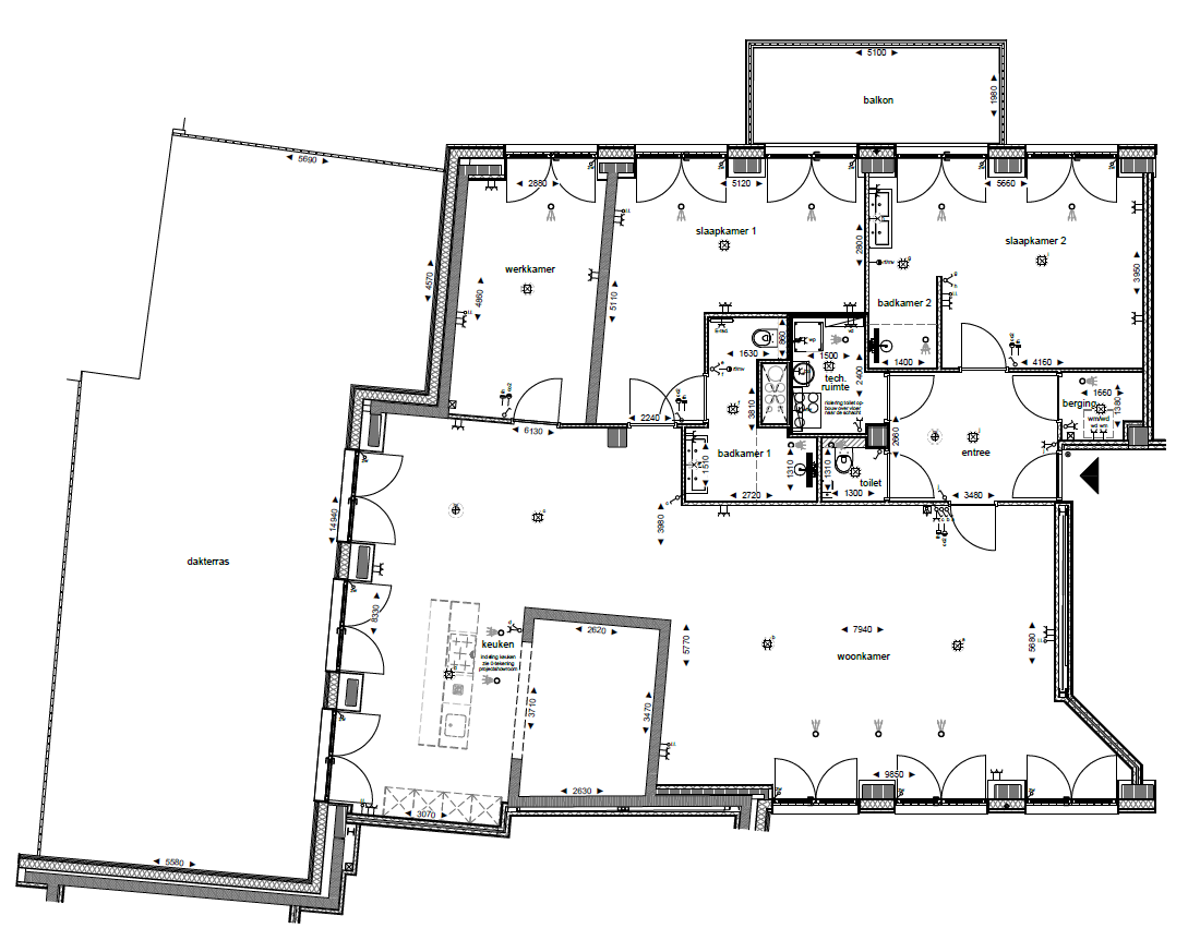 - Balkon (10 m2) gelegen op het Noordoosten en royaal dakterras (70 m2) gelegen op het westen