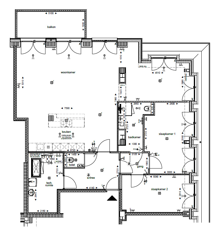- Balkon (10 m2) aan de keuken is gelegen op het Noordoosten