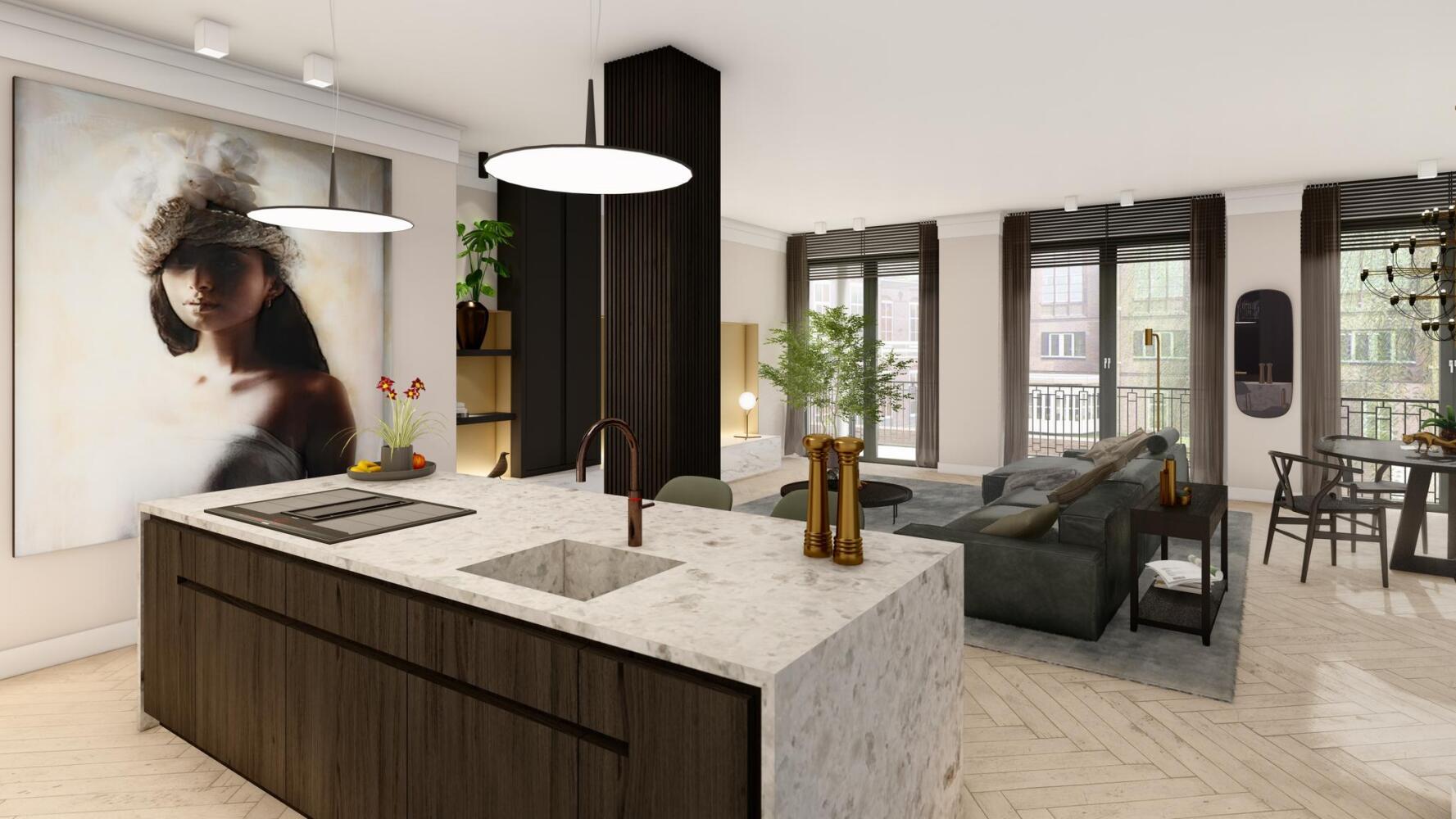 De appartementen in Stadsbuiten worden door Bouwbedrijf Wessels Zeist afgebouwd conform de plattegronden zoals weergegeven in de brochure. Via meer/minderwerk heeft u de keuze uit één of meerdere opties voor keuken, sanitair en vloer. De materialen van deze afbouw zijn onder andere afkomstig van Siemens/Bora, Paffoni en Marazzi. Deze leveranciers produceren uitsluitend hoogwaardige materialen.