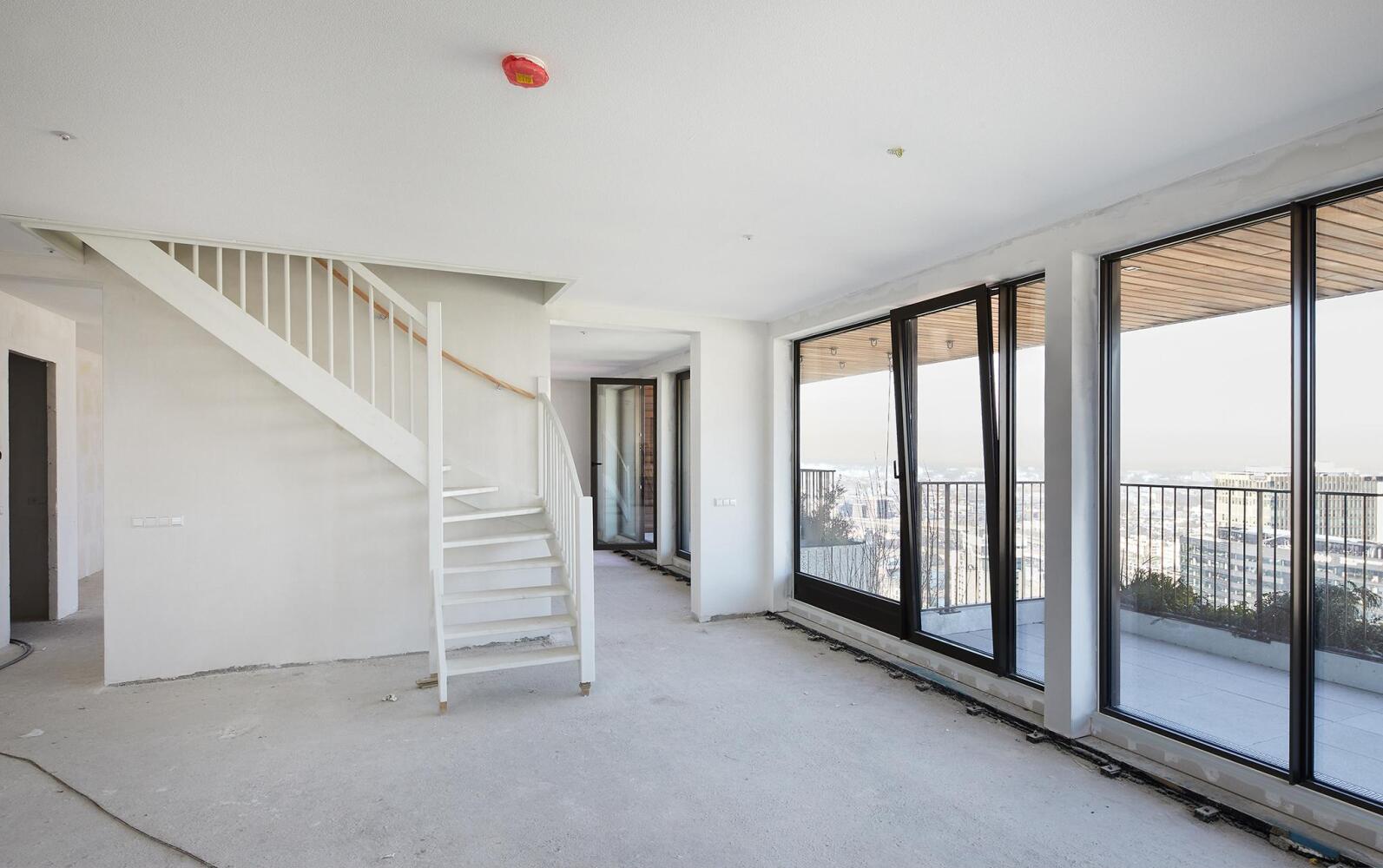 Via de trap vanuit de living (optie tot realiseren van een lift) kom je op de 30e verdieping waar zich twee royale slaapkamers bevinden, onder andere de grote master bedroom met royale badkamer ensuite en ruimte voor een inloopkast. Beide slaapkamers hebben toegang tot hun eigen terras, waardoor je altijd kunt genieten van de frisse lucht en het groen. Een derde slaap/logeer- annex werkkamer heeft tevens toegang tot een van de terrassen. Een extra badkamer en separaat toilet maken het plaatje compleet. Dompel jezelf onder in de wereld van luxe, waar elk detail is doordacht en elke ruimte een statement van verfijning is. Dit penthouse is niet zomaar een woning; het is een levensstijl die alleen de meest veeleisende en verfijnde kopers kunnen waarderen. De twee parkeerplaatsen in de ondergrondse garage (optioneel te huur) voegen extra gemak toe. Welkom thuis in de absolute top van exclusief wonen.