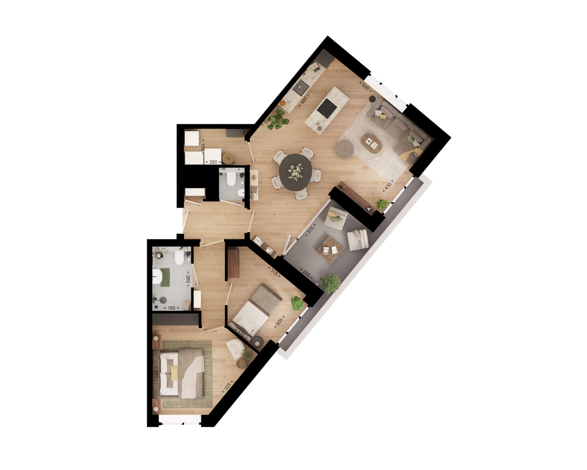 • twee volwaardige slaapkamers