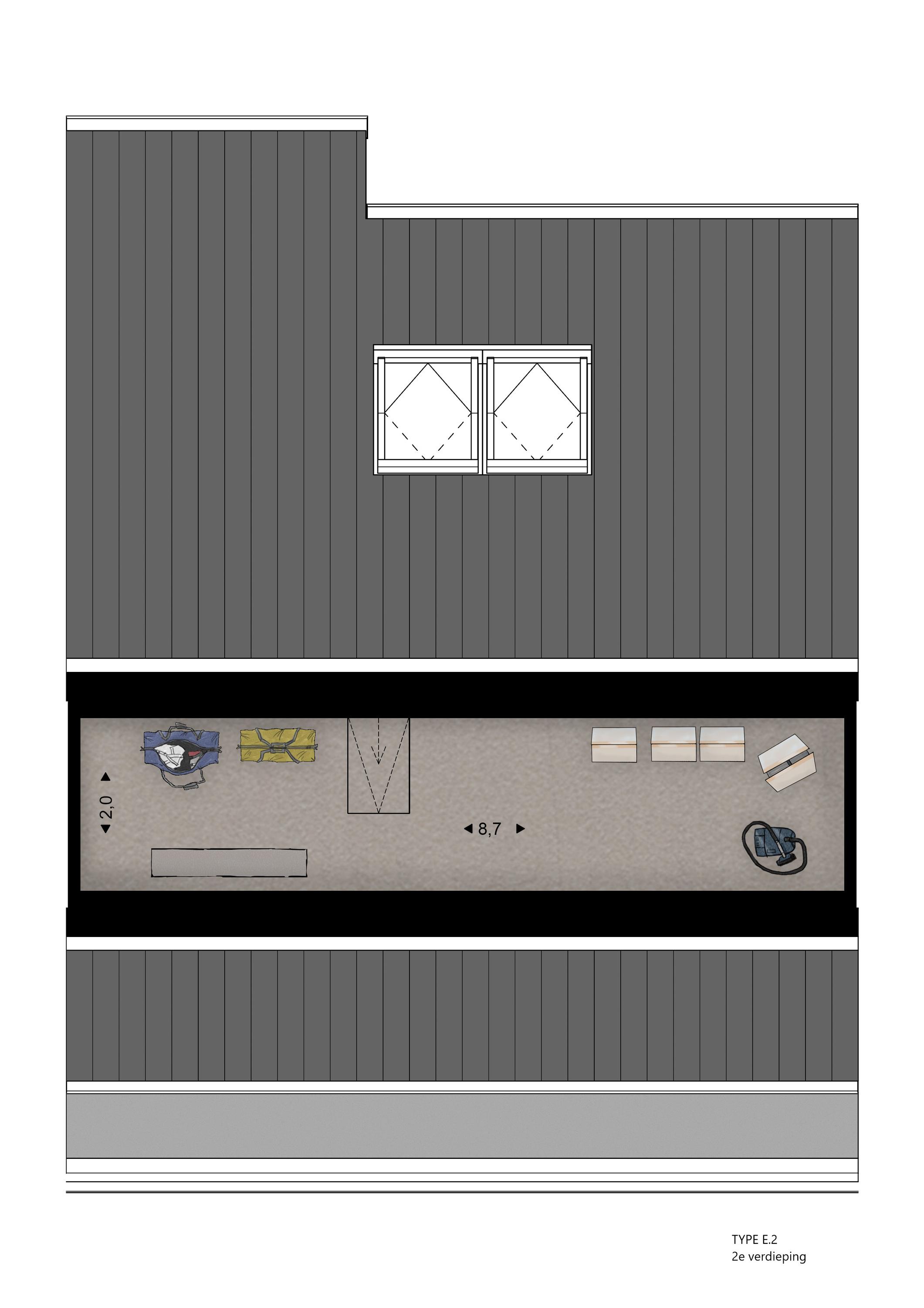 De tussenwoningen type E-2 zijn qua oppervlakte en indelingsmogelijkheden gelijk aan de hoekwoningen. U komt deze woningen binnen aan de voorzijde, via de veranda. U passeert de hal met meterkast, garderoberuimte en toilet, en stapt zo de royale woonruimte binnen. En royaal is hier nog zacht uitgedrukt! Een grote keuken met toegang tot de veranda aan de voorzijde, én een leefruimte met optimale indelingsmogelijkheden aan de achtertuinzijde. Kantoor aan huis, een ruime speelkamer voor de (klein)kinderen, of misschien ruimte voor een piano? Het kan hier allemaal!