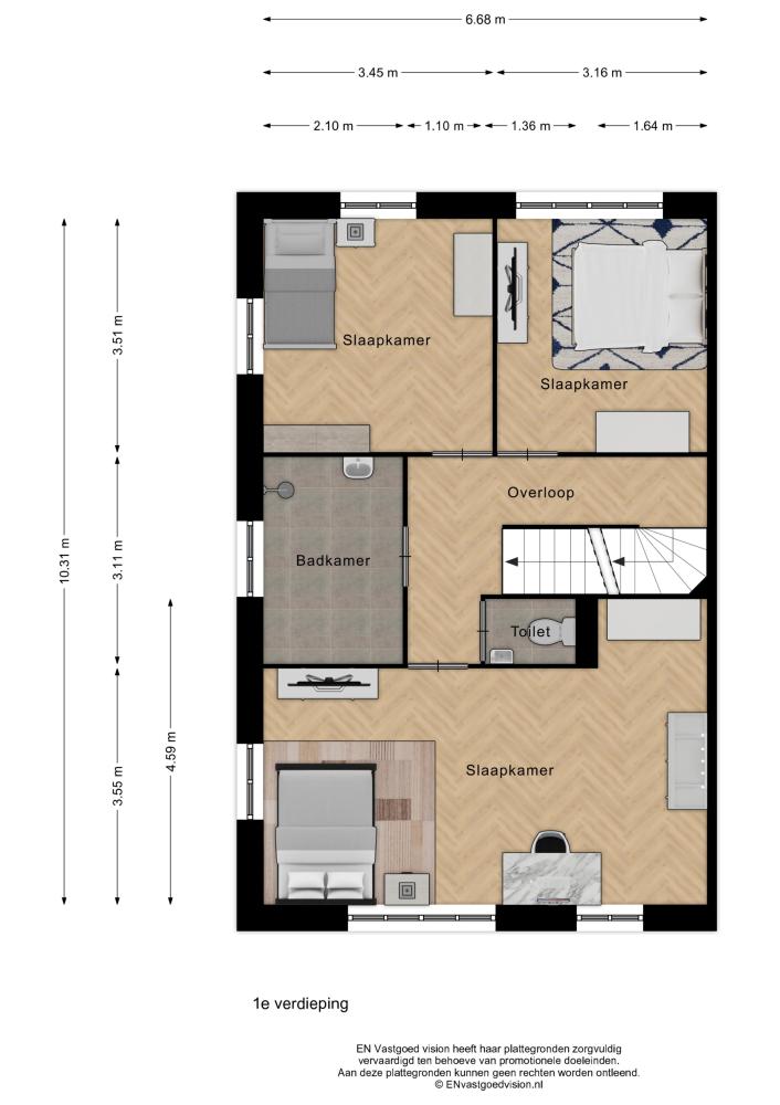 Boven zijn drie royale slaapkamers, waarvan één door de indeling uitnodigt om de droom van een eigen walk-in-closet te vervullen. Een royale badkamer met een blank canvas waarop u uw eigen ideale ontspanningsruimte kunt ontwerpen. Met voldoende vierkante meters heeft u de vrijheid en zijn de mogelijkheden eindeloos. Het toilet op deze verdieping heeft een eigen plek. Prettig voor de privacy! De zoldervertrekken kunnen naar eigen inzicht worden ingedeeld, eventueel nog met een vliering of vide. De hoogte is er!