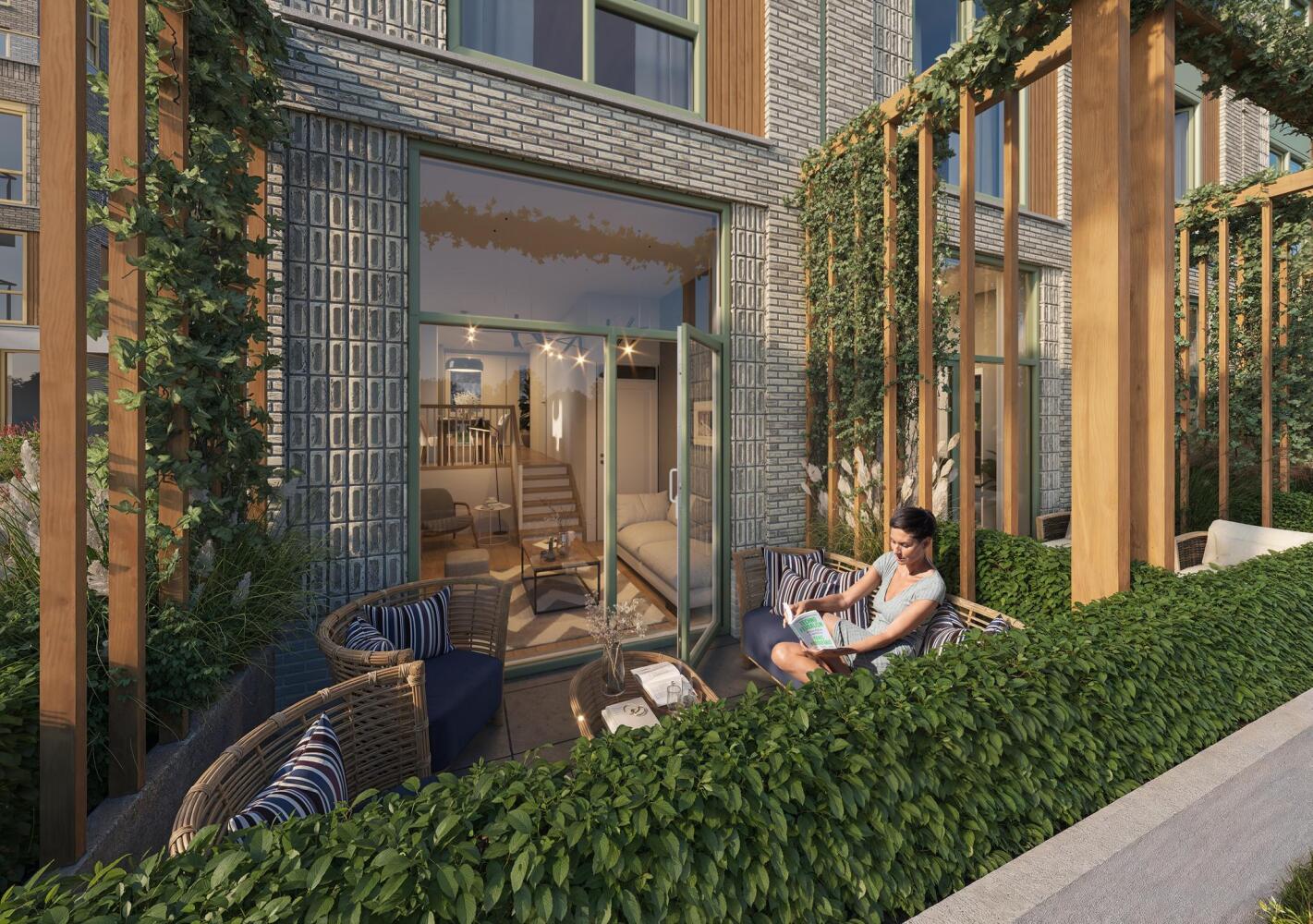Blok 4 telt 5 terraswoningen met een unieke, speelse indeling over 4 woonlagen. Dit is een ideale woning voor wie houdt van licht, ruimte en comfort. Uw woning is vanuit de parkeerkelder – met berging en fietsenstalling – direct bereikbaar via de portieken van de appartementengebouwen.