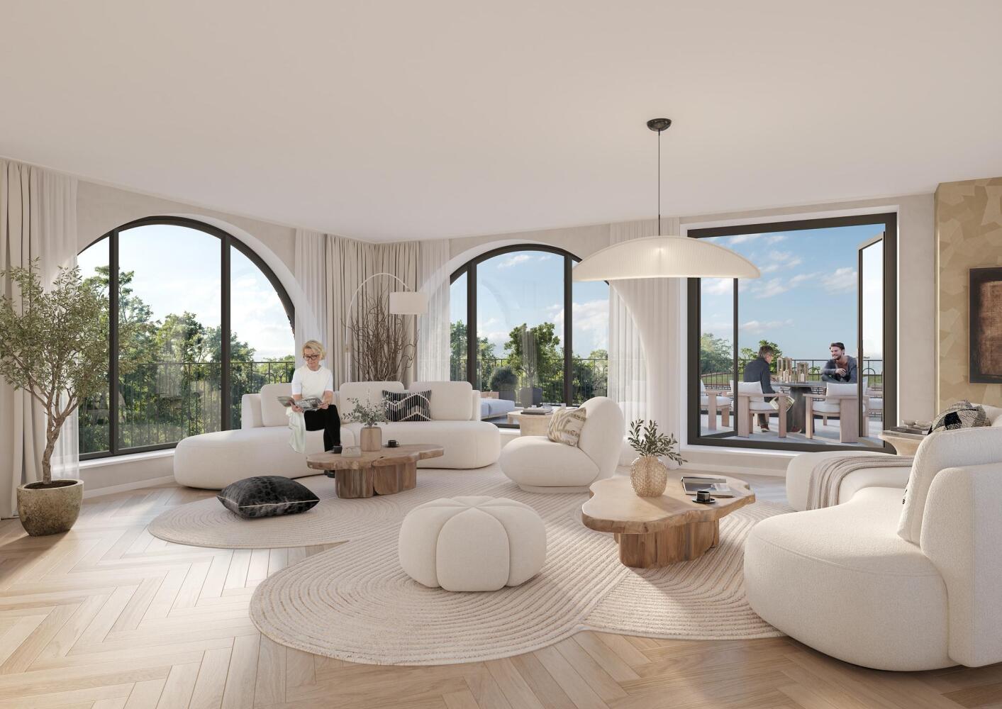 De indrukwekkende privé buitenruimte is maar liefst 80 m²! Naast een aparte woonkeuken, een woonkamer met prachtige, grote ronde raampartijen, 3 slaapkamers, een inloopkast, 2 badkamers en 2 parkeerplaatsen, biedt dit penthouse bovenal een fantastisch uitzicht over het plein.