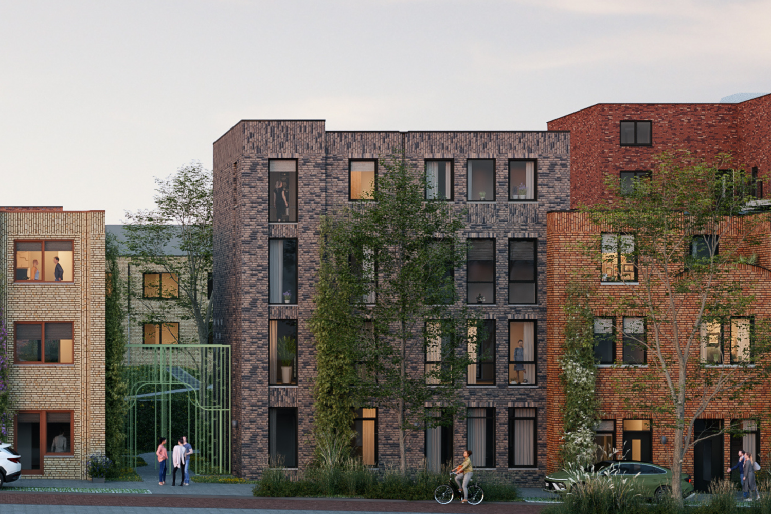 In de Danablustraat dragen de geveltuintjes en de kenmerkende Woerdense stoep bij aan een uitnodigend en sfeervol straatbeeld. Bewoners kunnen er voor de deur een kopje koffie met de buren drinken, terwijl voorbijgangers genieten van het groene en levendige karakter van de straat. Balkons bieden plekken om te lezen of simpelweg van de zon te genieten. Zo ontstaat een fijne, sociale woonomgeving.