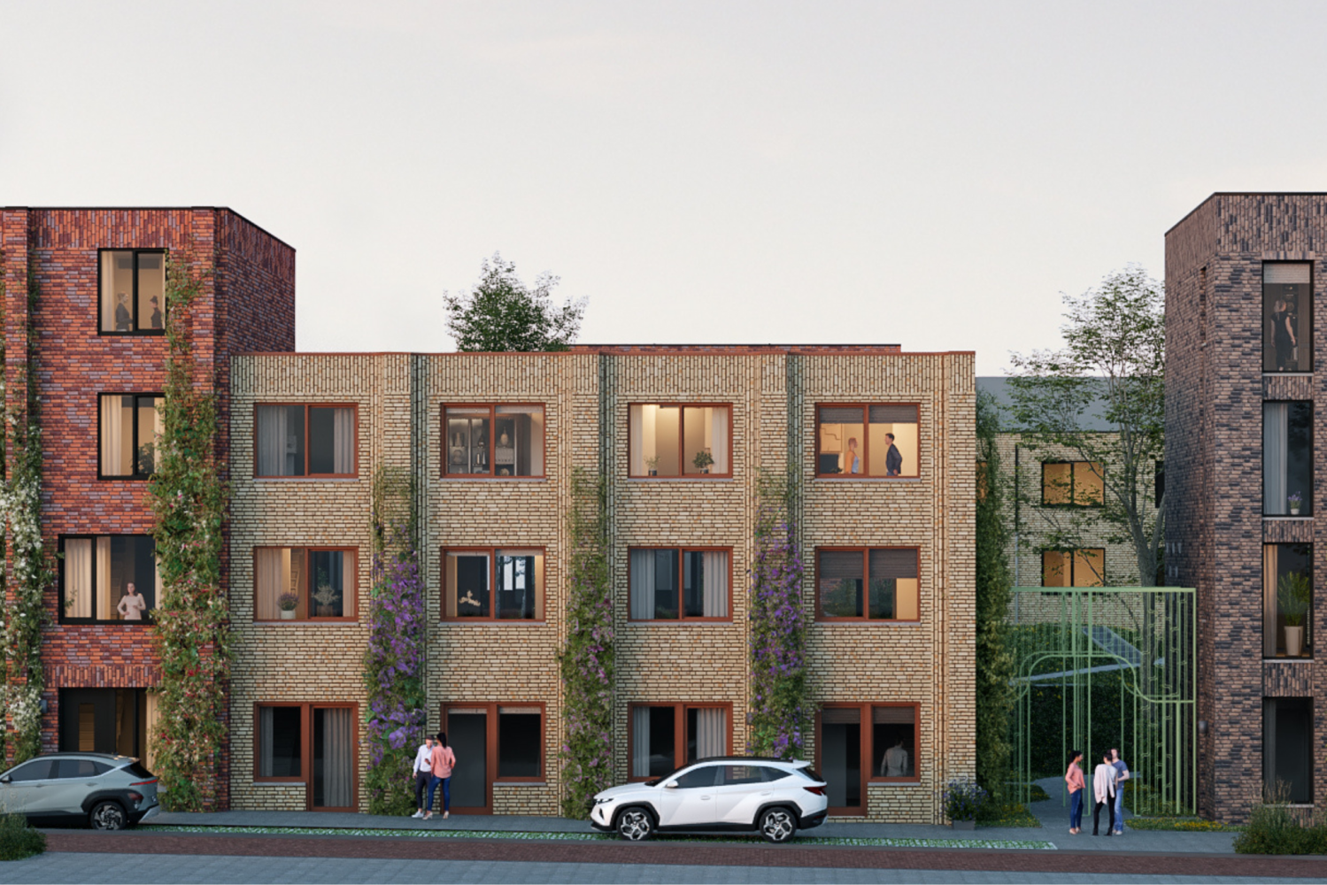 In de Danablustraat dragen de geveltuintjes en de kenmerkende Woerdense stoep bij aan een uitnodigend en sfeervol straatbeeld. Bewoners kunnen er voor de deur een kopje koffie met de buren drinken, terwijl voorbijgangers genieten van het groene en levendige karakter van de straat. Balkons bieden plekken om te lezen of simpelweg van de zon te genieten. Zo ontstaat een fijne, sociale woonomgeving.