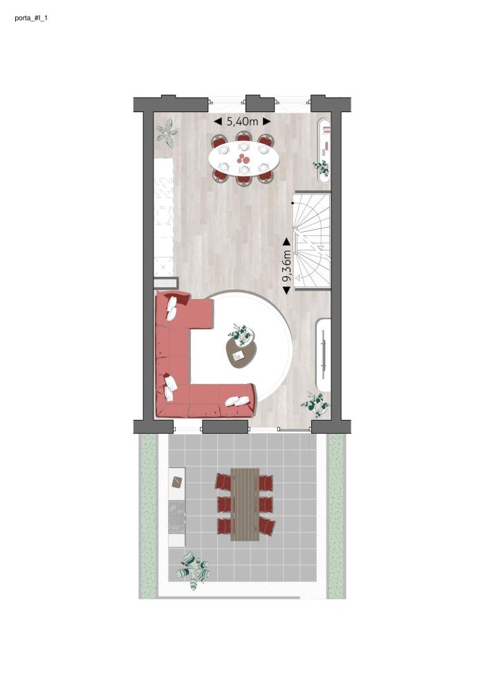 De straten van PORTA krijgen een frisse en levendige uitstraling dankzij de speelse variatie in bouwhoogtes, de fraaie erkers die diepte en dynamiek toevoegen, en de subtiel naar achteren geplaatste dakterrassen. Dit zorgt ervoor dat elke gevel een uniek en karaktervol uiterlijk heeft.