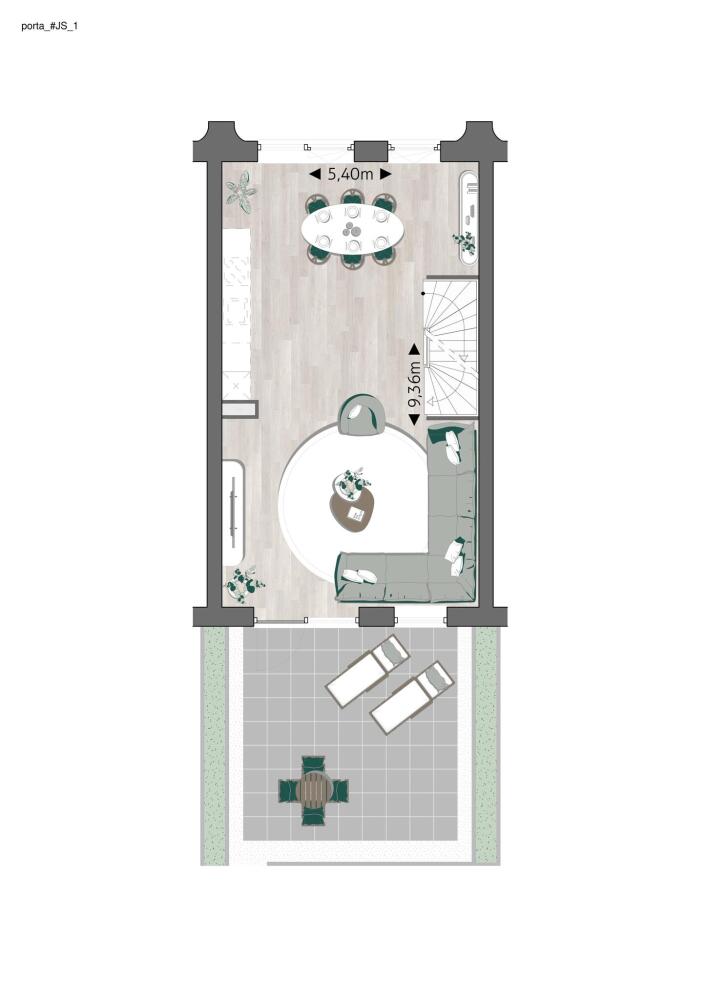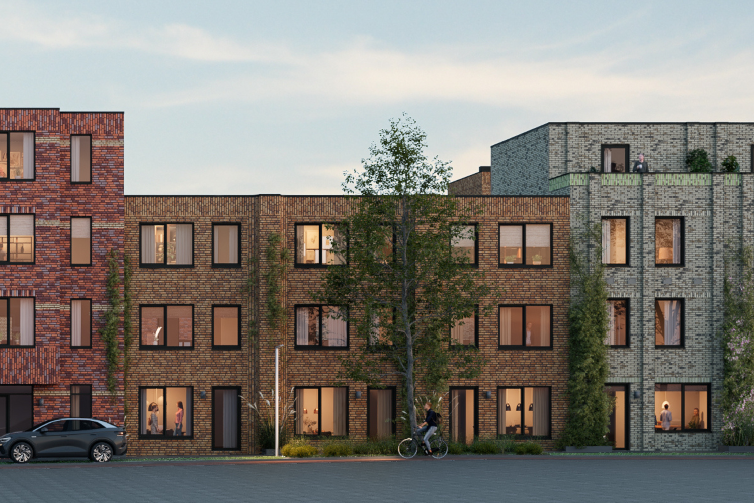 De straten van PORTA krijgen een frisse en levendige uitstraling dankzij de speelse variatie in bouwhoogtes, de fraaie erkers die diepte en dynamiek toevoegen, en de subtiel naar achteren geplaatste dakterrassen. Dit zorgt ervoor dat elke gevel een uniek en karaktervol uiterlijk heeft.