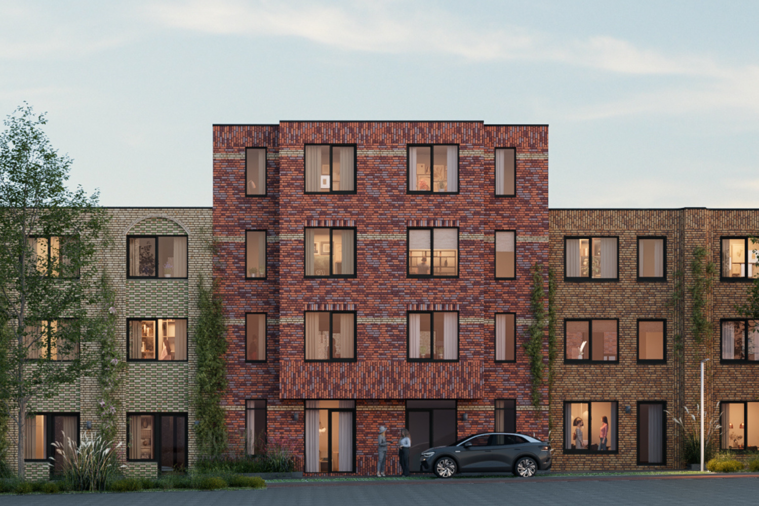 De straten van PORTA krijgen een frisse en levendige uitstraling dankzij de speelse variatie in bouwhoogtes, de fraaie erkers die diepte en dynamiek toevoegen, en de subtiel naar achteren geplaatste dakterrassen. Dit zorgt ervoor dat elke gevel een uniek en karaktervol uiterlijk heeft.