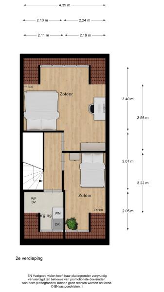 Tweede verdieping: overloop. [Technische en facilitaire ruimte met aansluitingen wasmachine en -droger.] Mogelijkheid geheel open doorzonvertrek als vierde of uitbreiding met vijfde slaapkamer.