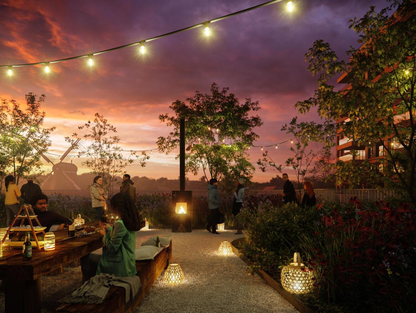 De Zaanse Helden is een uniek ontwerp waar flora, fauna, mens en architectuur samenkomen. De 'eilanden' in de daktuin, gelegen op de parkeergarage, vormen unieke plekken om straks heerlijk te ontspannen. Over elke plant, steen, bank of verlichting is zorgvuldig nagedacht. Het ontwerp van de tuin is geïnspireerd op het typisch nabij gelegen Zaanse slagenlandschap en de natuur wordt letterlijk het project binnengehaald. Zo komt er een ijsvogelwand om het unieke blauwe vogeltje hier te laten wonen. Ook worden er verschillende nestkasten geplaatst om allerlei diersoorten aan te trekken die je ook in de Zaanstreek vindt. Je wordt straks wakker midden in de natuur.