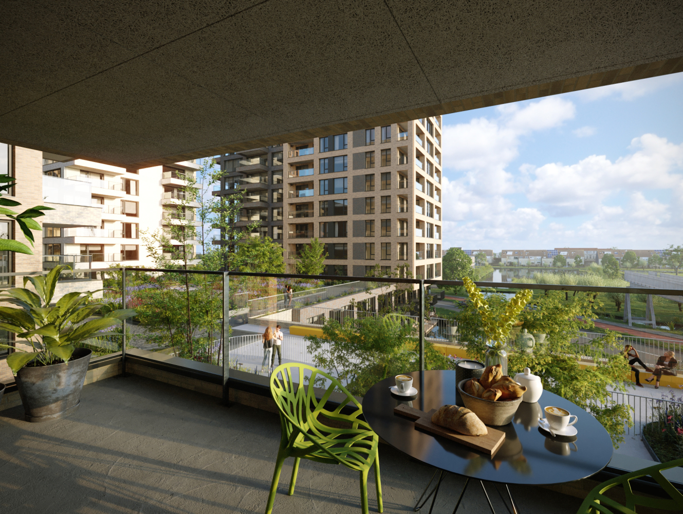 De Ruyter is slim ontworpen zodat het geen vier maar zes hoeken heeft en dus héél veel hoekappartementen. Heerlijk ruimtelijke en lichte appartementen waar het daglicht aan twee kanten binnenvalt door de verdiepingshoge ramen. Qua uitzicht kun je kiezen: het historische molenpark of het gezellige centrum van Zaandam? De Ruyter heeft een grote diversiteit aan twee- en drie- kamerappartementen. De architectuur oogt rustig, modern en strak, maar wie beter kijkt ontdekt een subtiele rijkheid in de verschillende typen en kleuren metselwerk.
