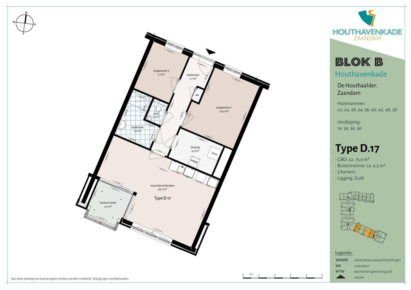 - Type II, 3-kamerappartementen De Houthaalder 48