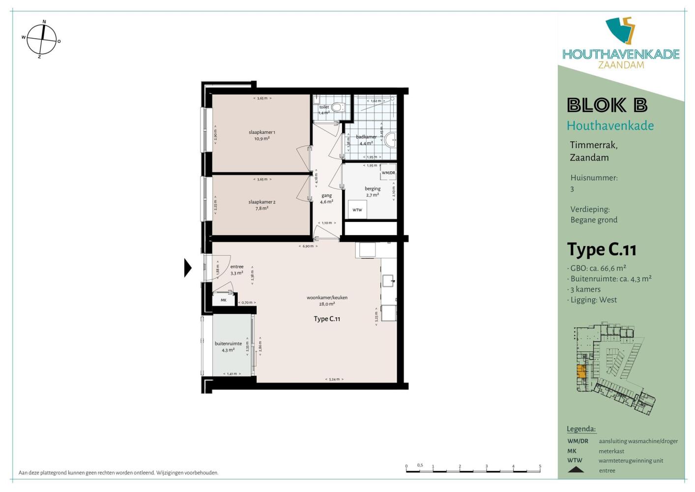 PortiekflatType II, 3-kamerappartementen Timmerrak 3